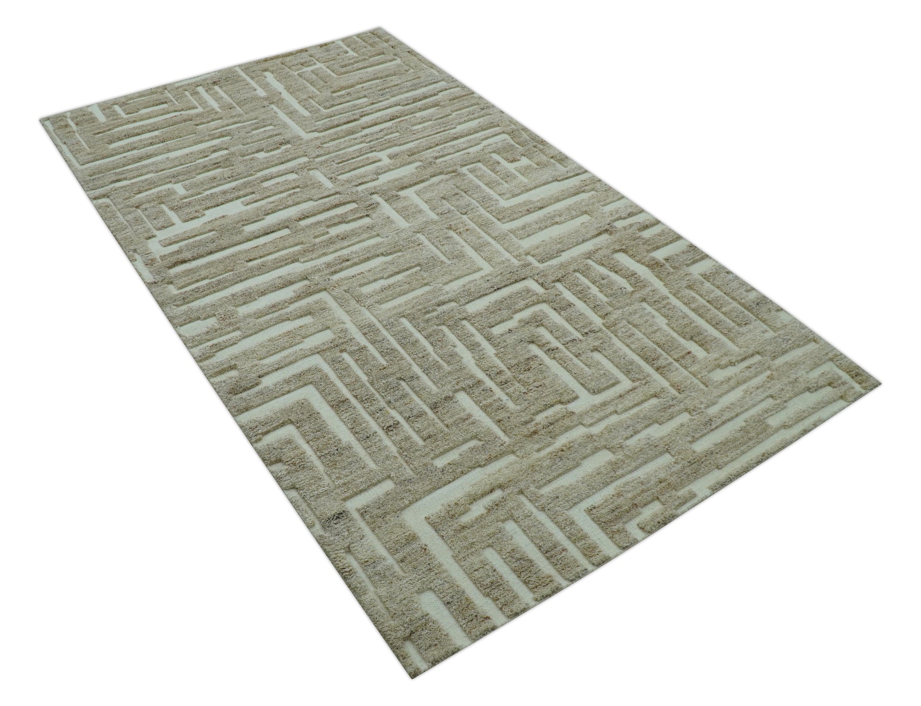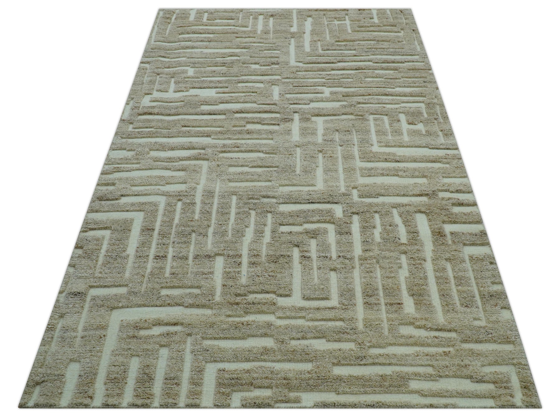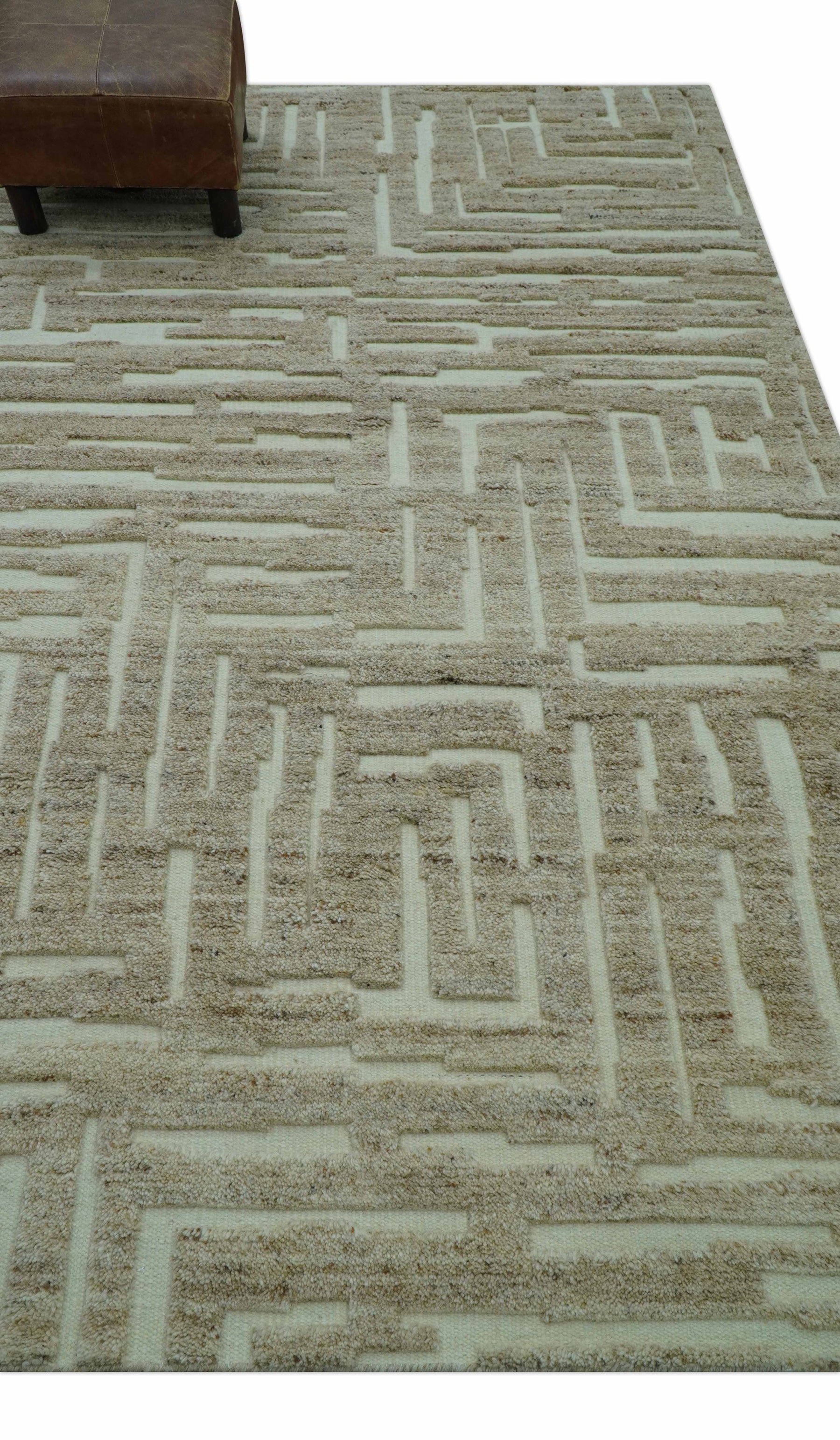 Custom-crafted hand-knotted wool area rug showcasing contemporary design in warm beige tones. Expertly woven using traditional techniques, it combines outstanding durability with understated elegance. The neutral palette adapts effortlessly to modern interiors, while superior wool quality ensures lasting performance and sophisticated visual presence for discerning homeowners seeking quality investment pieces.