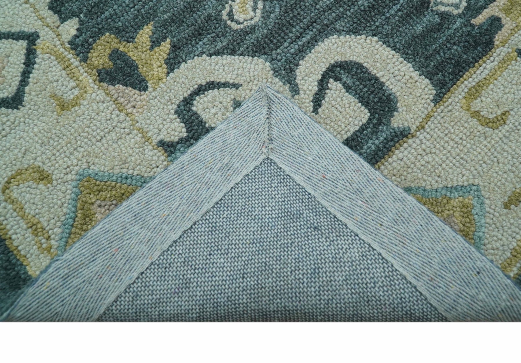 This custom-commissioned teal Oushak rug showcases hand-tufted wool craftsmanship rooted in Turkish heritage. Tailored precisely to your specifications, it merges traditional artistry with design. The result is a distinguished, resilient floor covering that elevates any space with authentic character and enduring sophistication.
