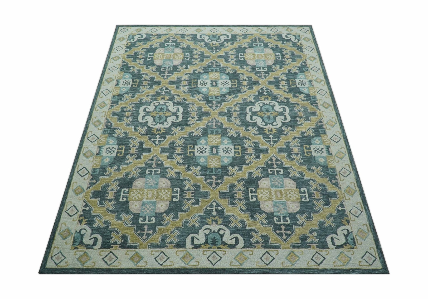 Taj Custom Made Teal Traditional Design Hand Tufted Wool Rug