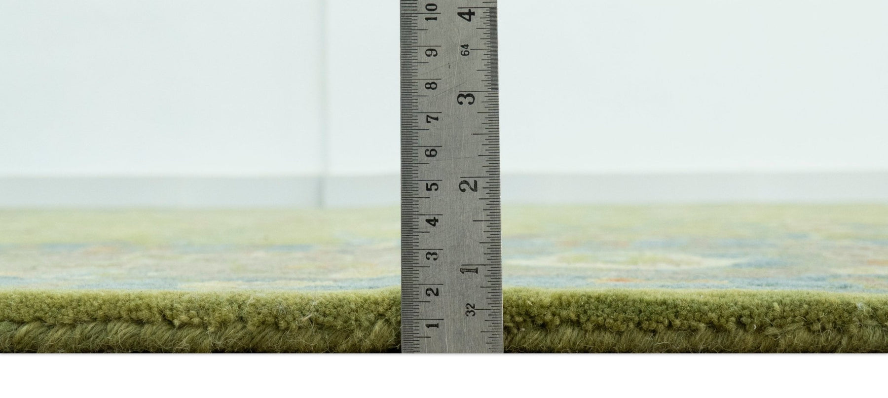 This wool area rug is hand-tufted with a beautiful green and blue traditional floral design. Made with high quality materials, this rug will add warmth and elegance to any room. Create a unique, custom look with this one-of-a-kind piece.