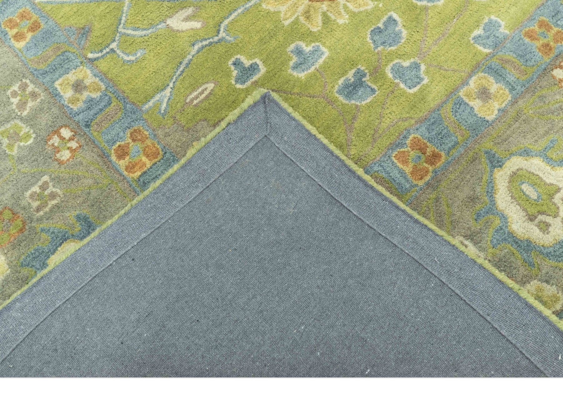 Custom Made Traditional Floral Design Green And Blue Hand Tufted wool Area Rug