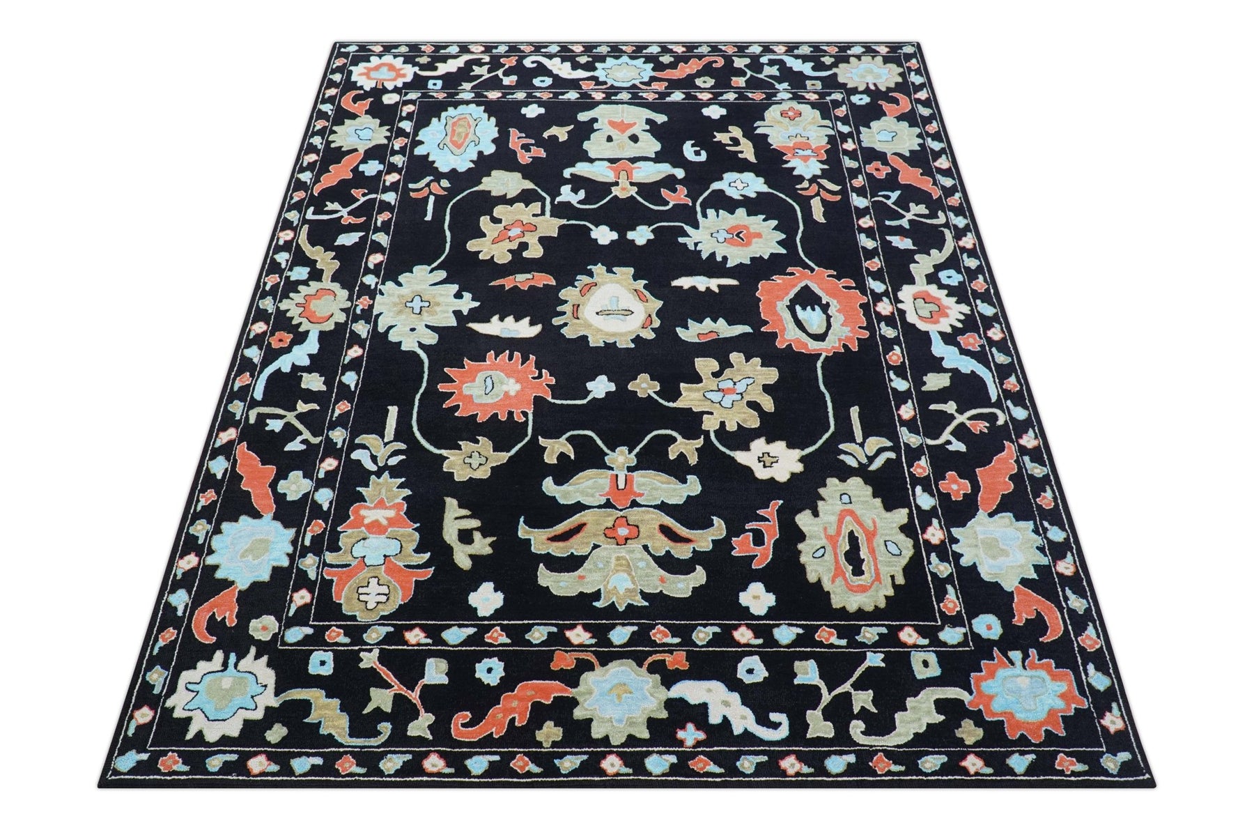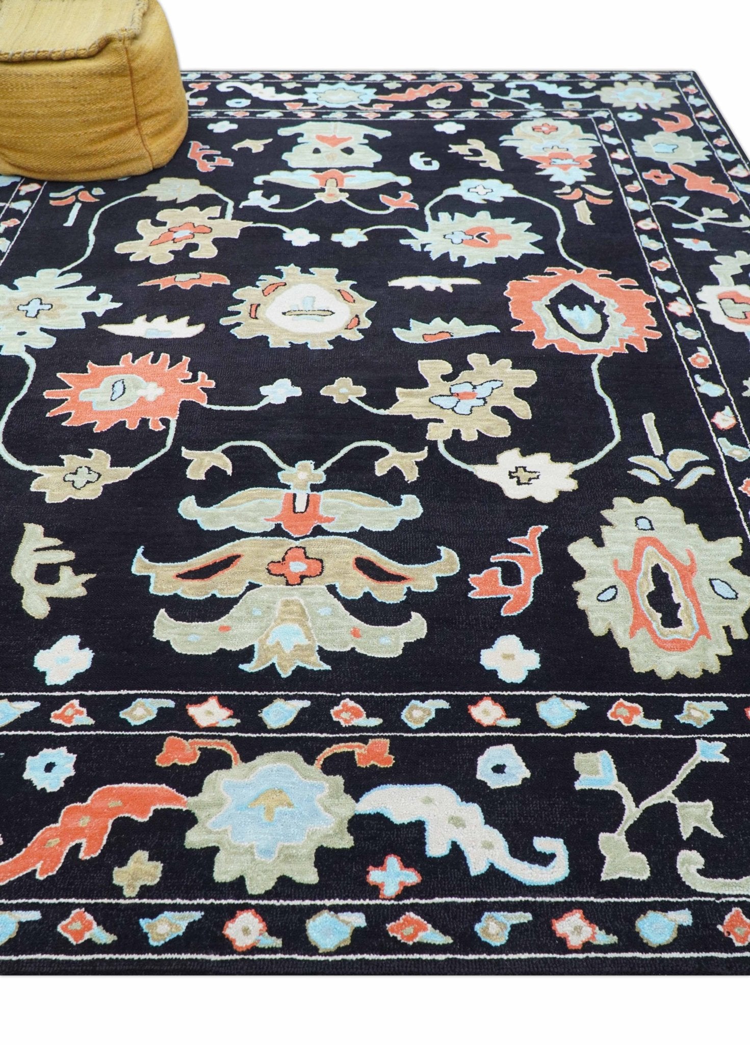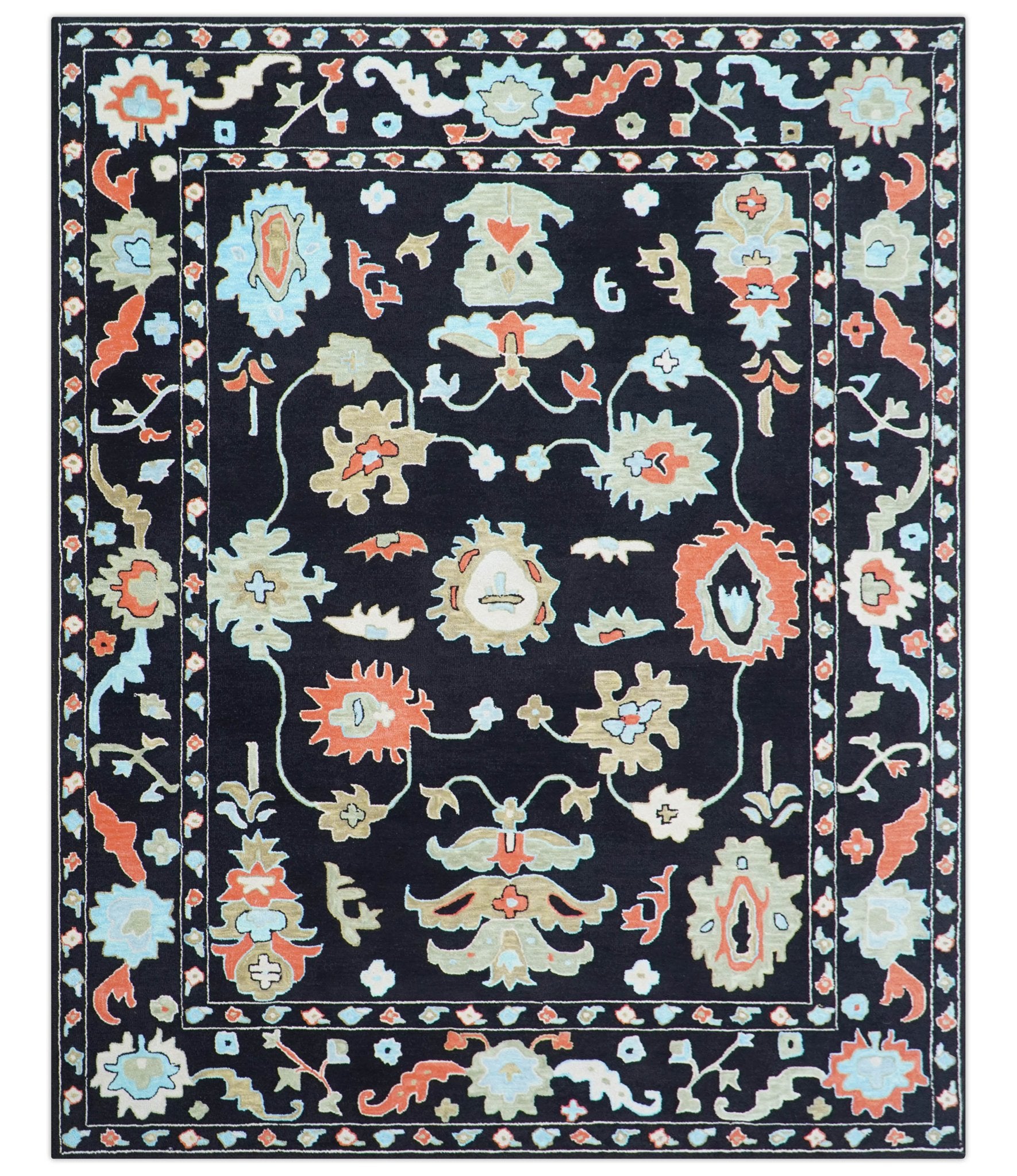 Azure Custom Made Traditional Oushak Black Hand Tufted Wool Rug