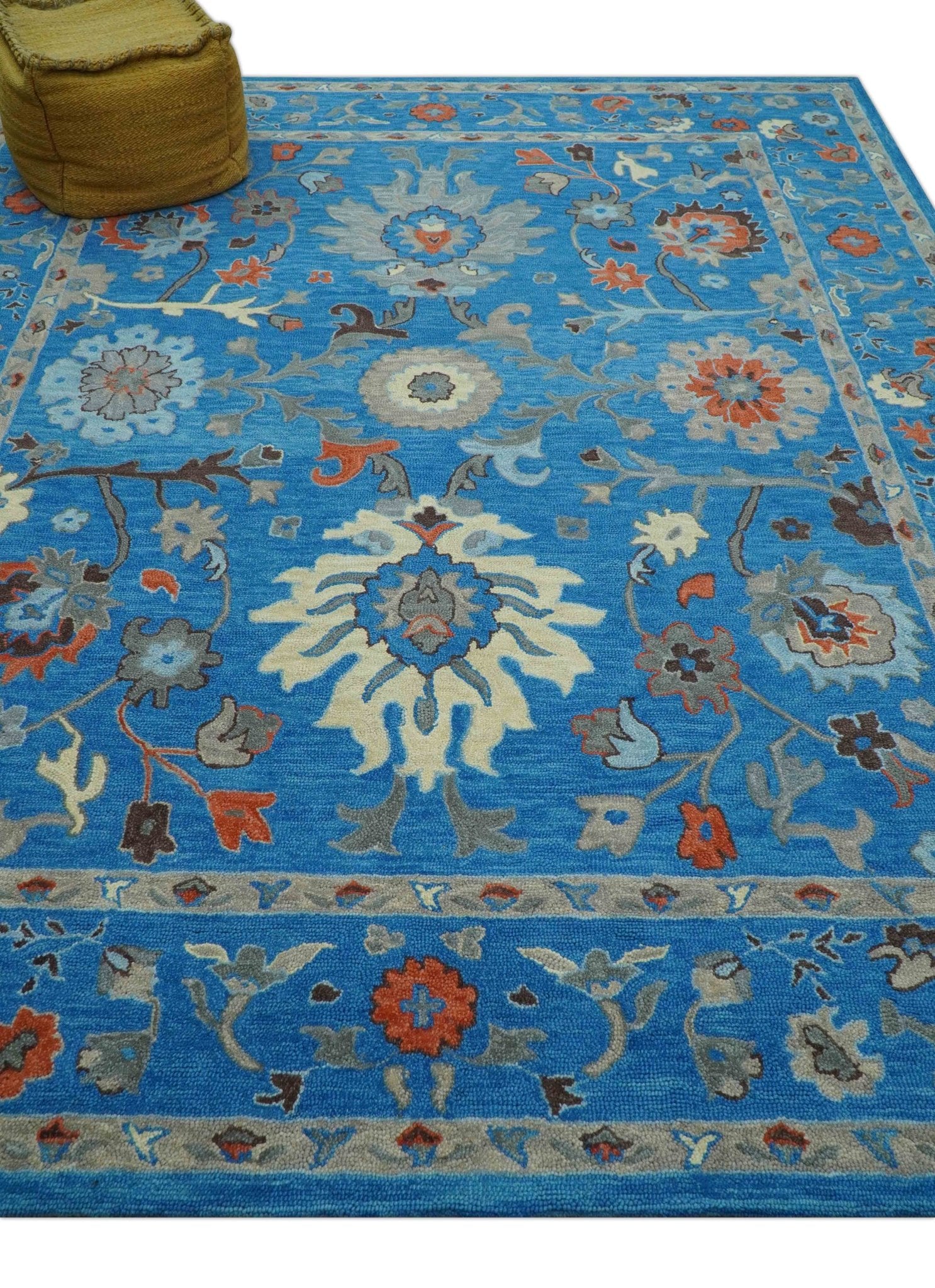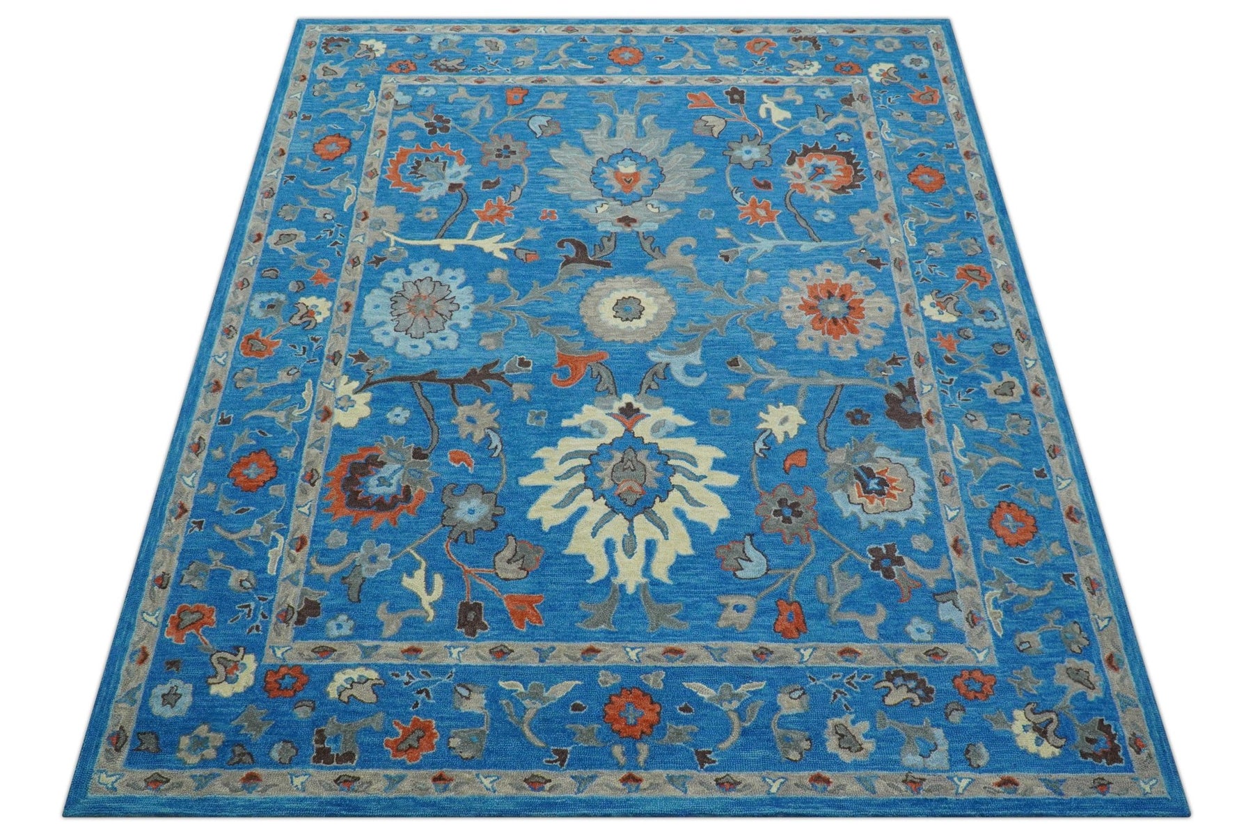 Custom Made Traditional Oushak Blue And Beige Hand Tufted Wool Rug
