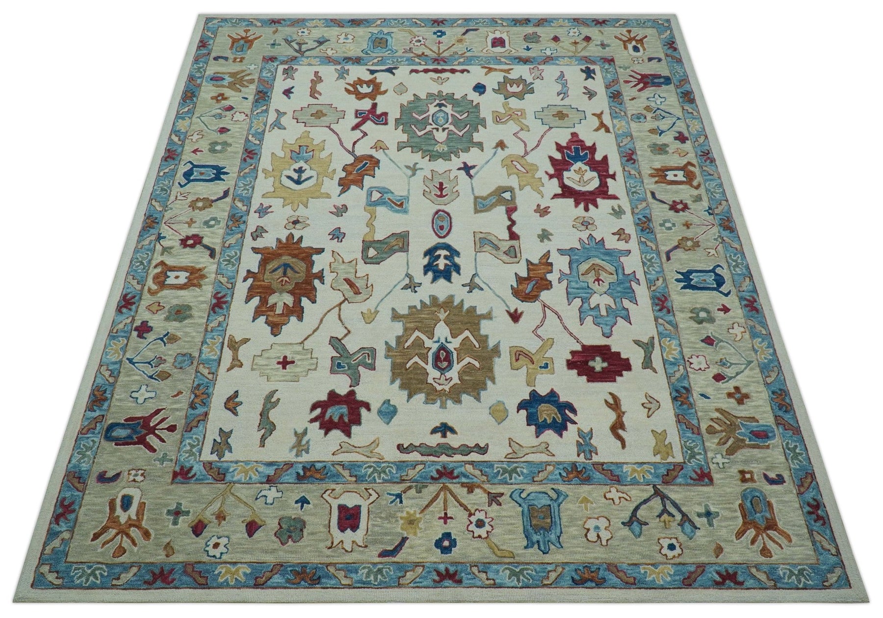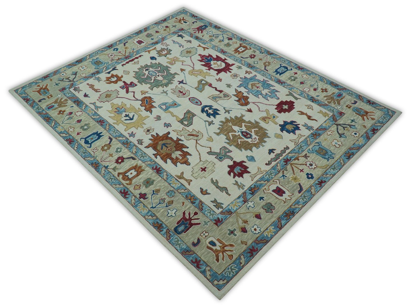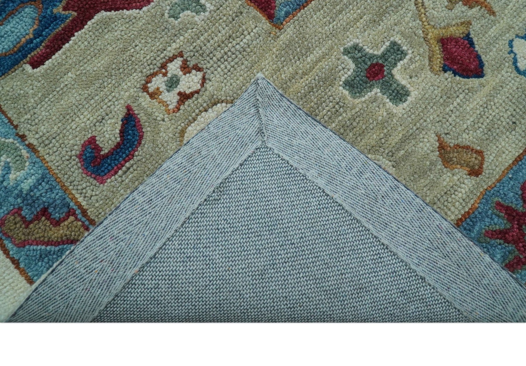 Custom Made Traditional Oushak Blue And Beige Hand Tufted Wool Rug