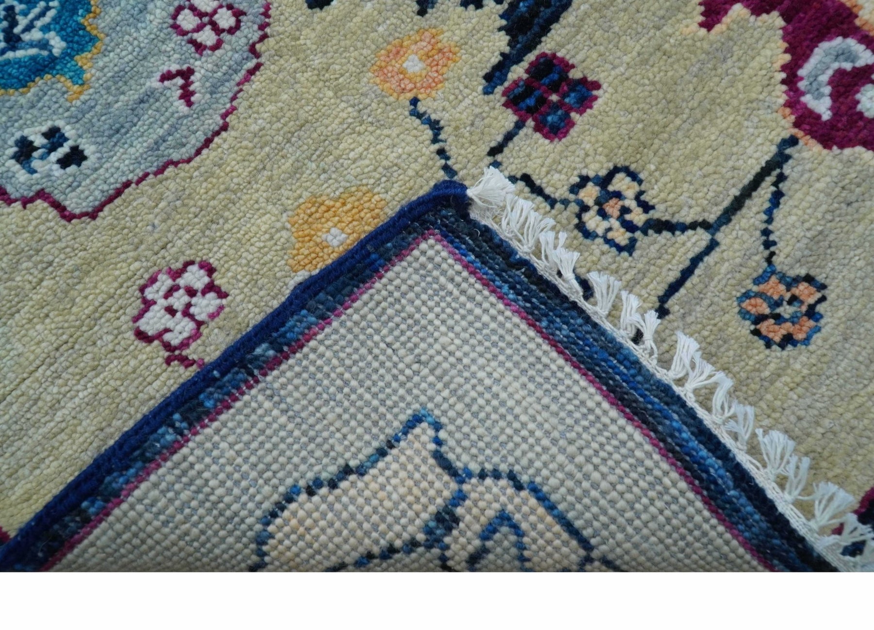 Custom Made Traditional Oushak Blue And Ivory Hand Knotted Wool Rug