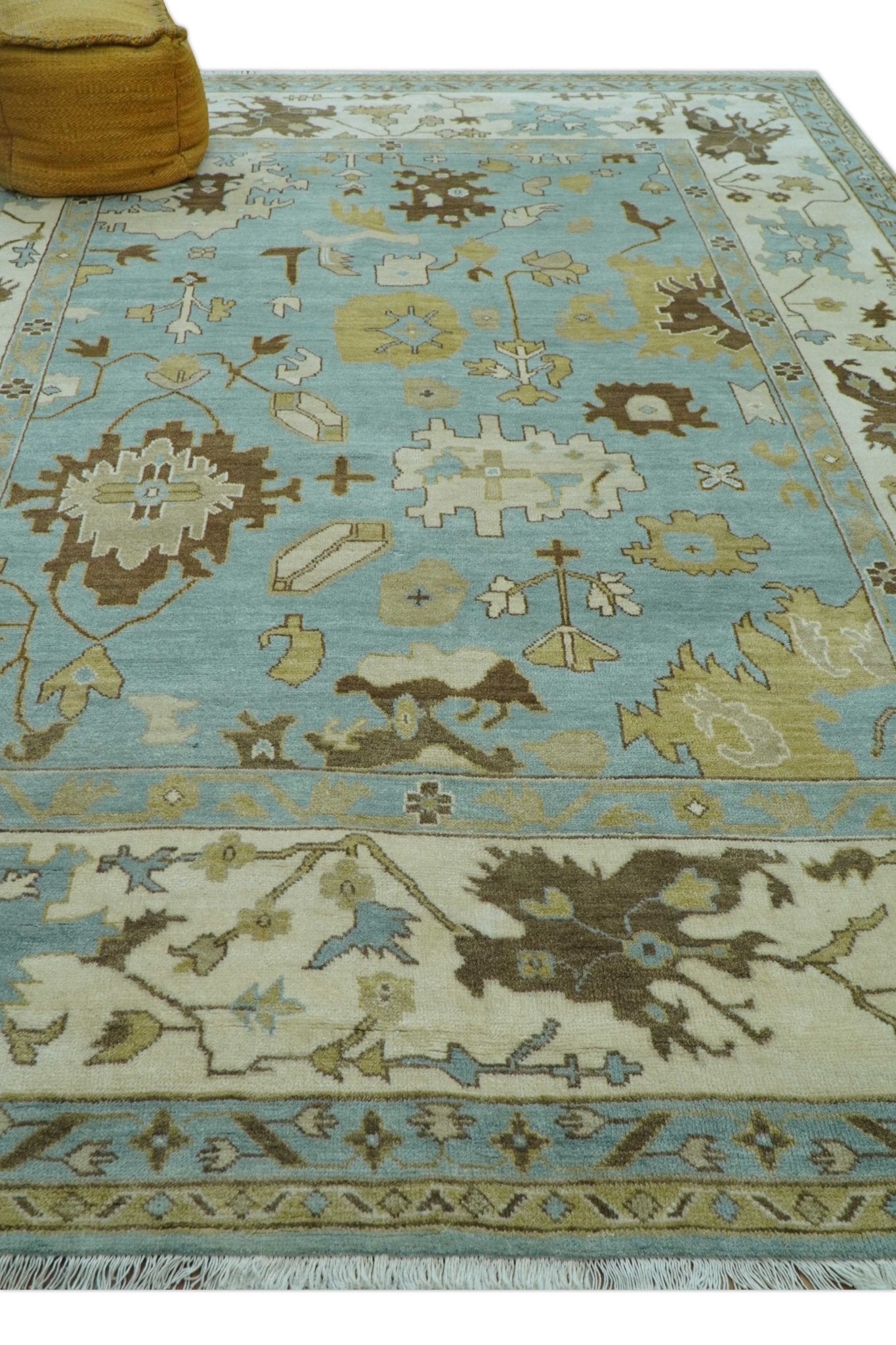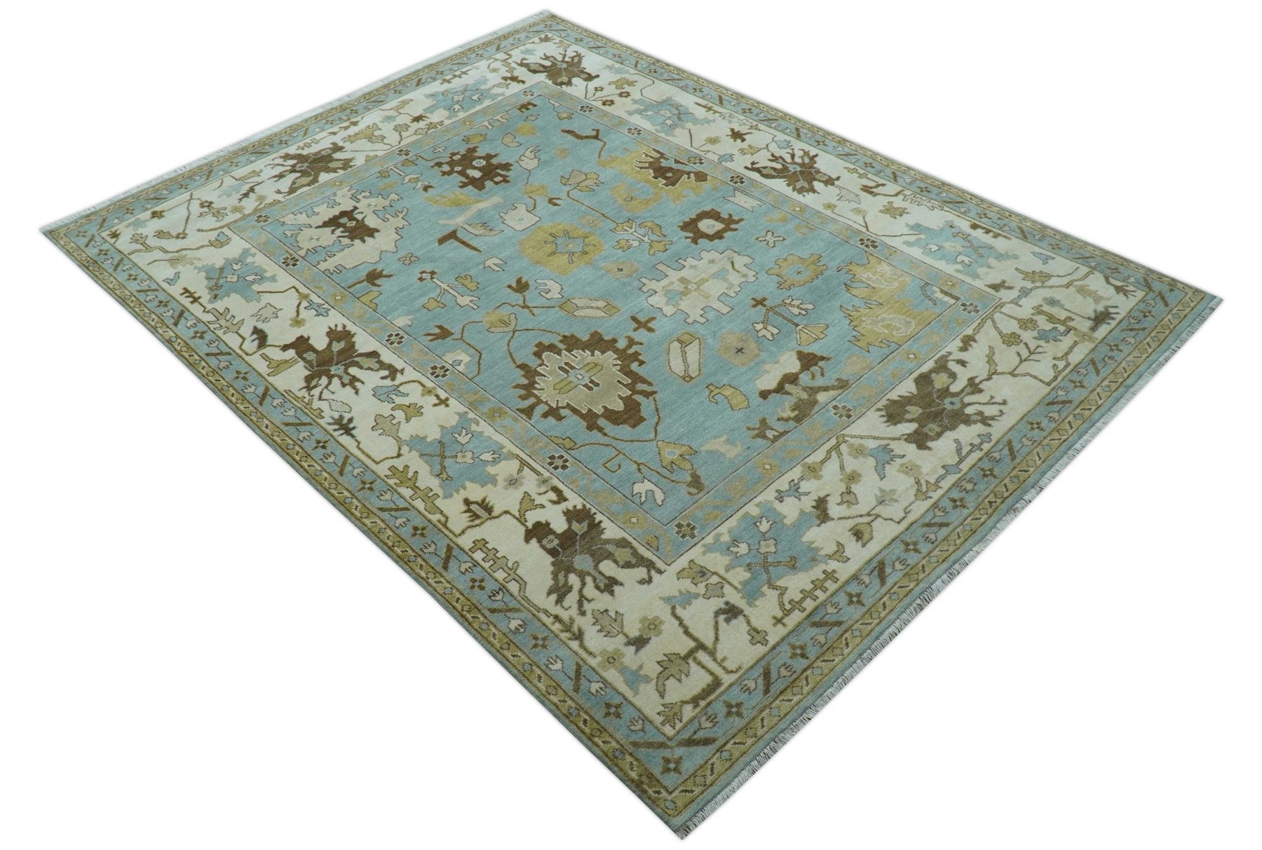 Custom Made Traditional Oushak Design Blue Hand Knotted Wool Area Rug