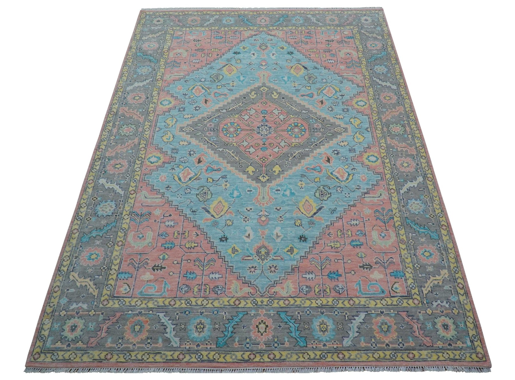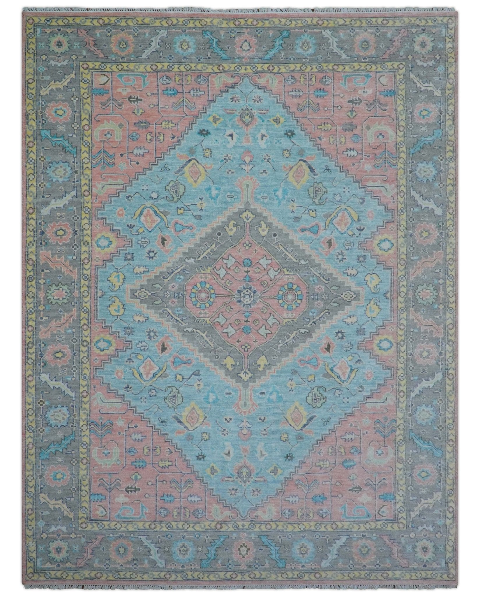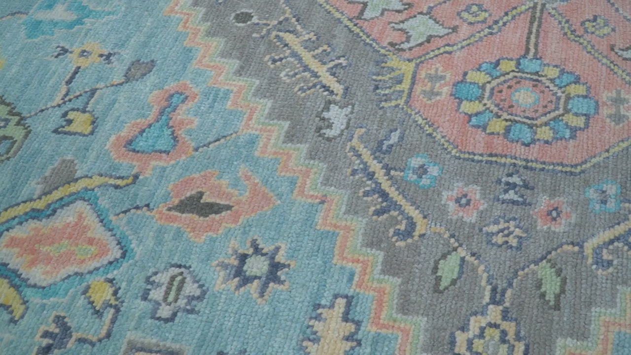 Eliane Custom Made Traditional Style Pink And Blue Hand Knotted Wool Area Rug