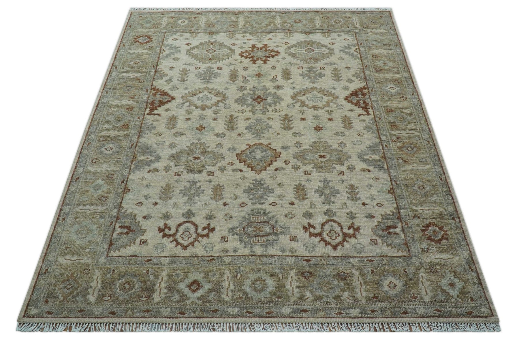 Custom Made Traditional Turkish Beige Hand knotted Wool Area Rug