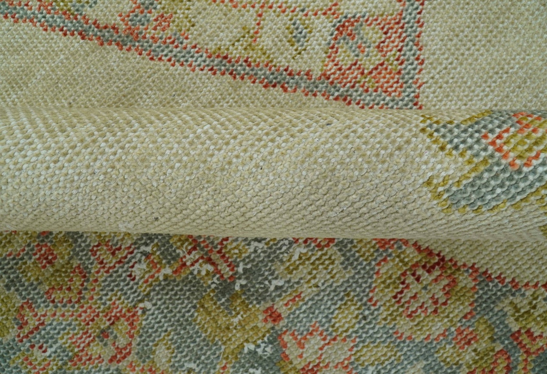 Custom Made Turkish Design Beige and Blue Hand Knotted Wool Rug