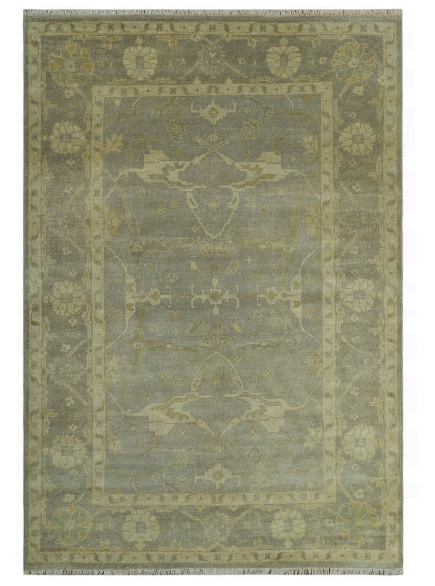Gray And Beige Traditional Oushak Design Hand Knotted 5.6x8.6 wool area rug
