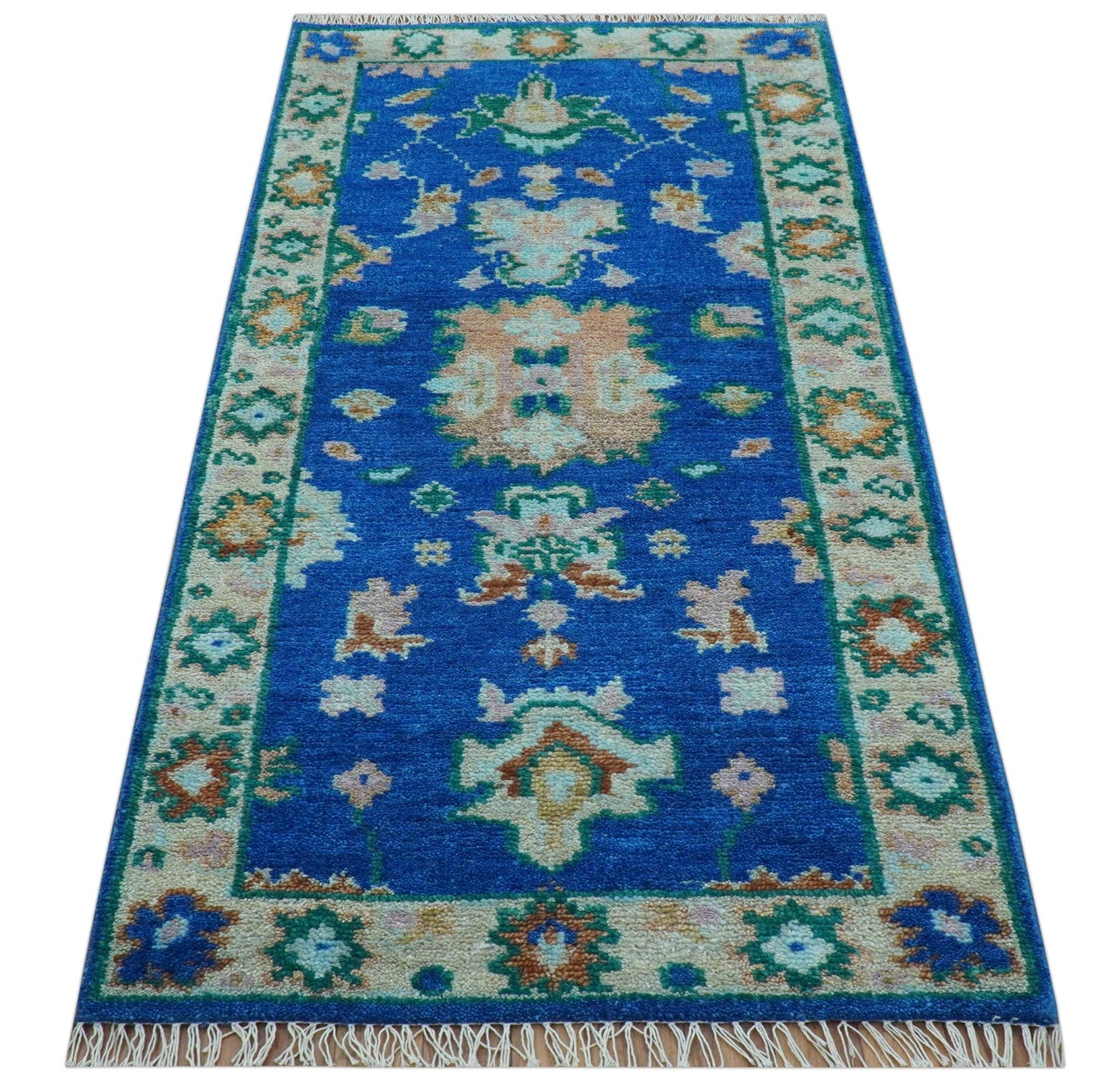 Hand knotted 2.6x6 Blue Traditional Oushak Design Wool Area Rug