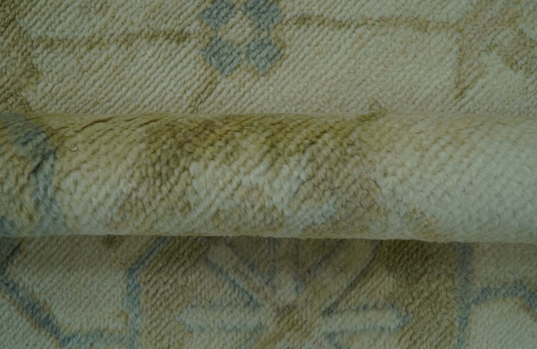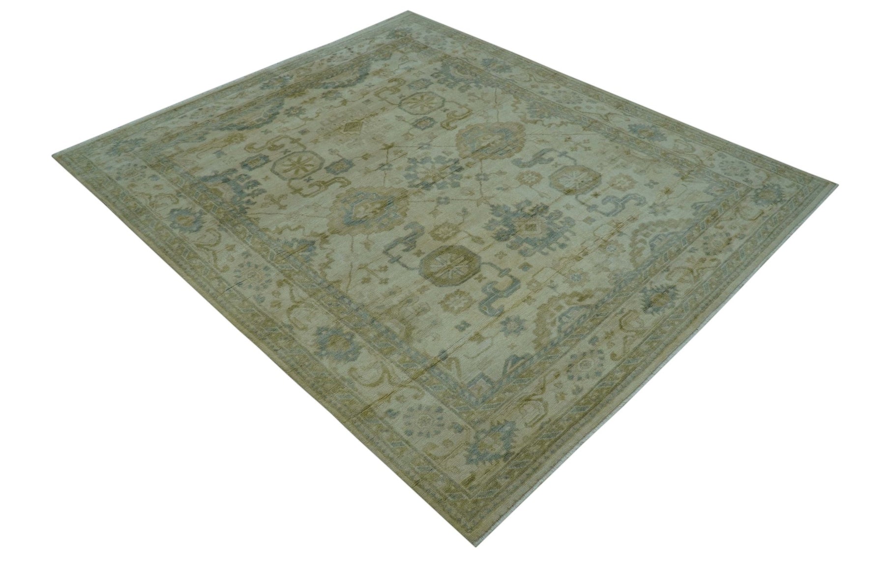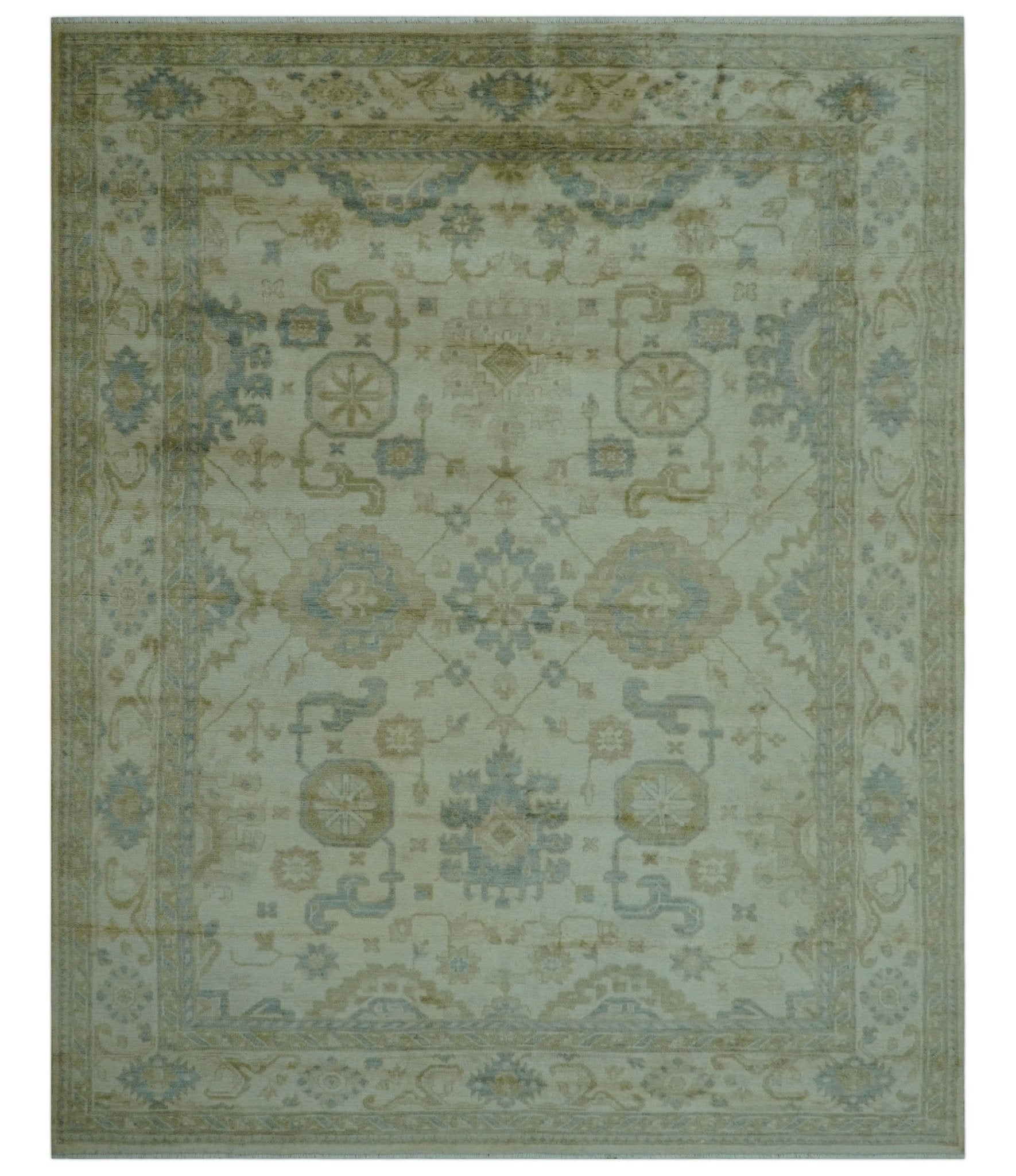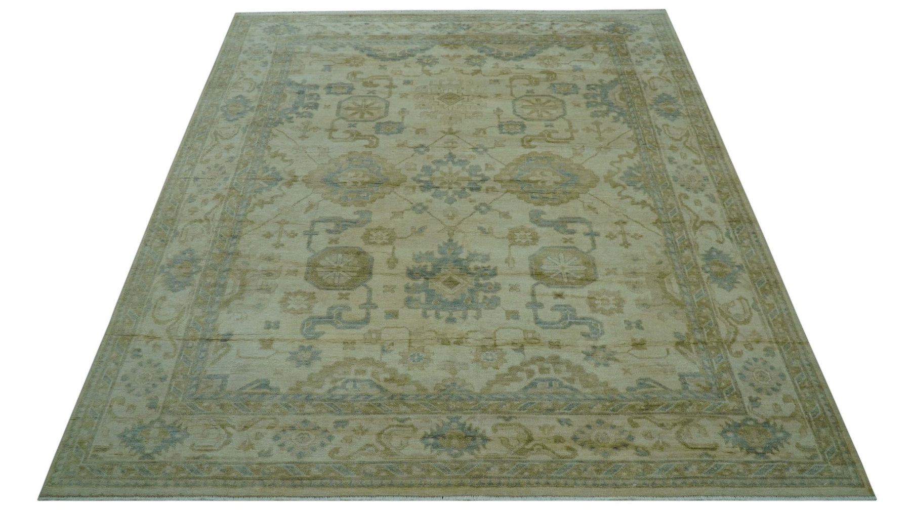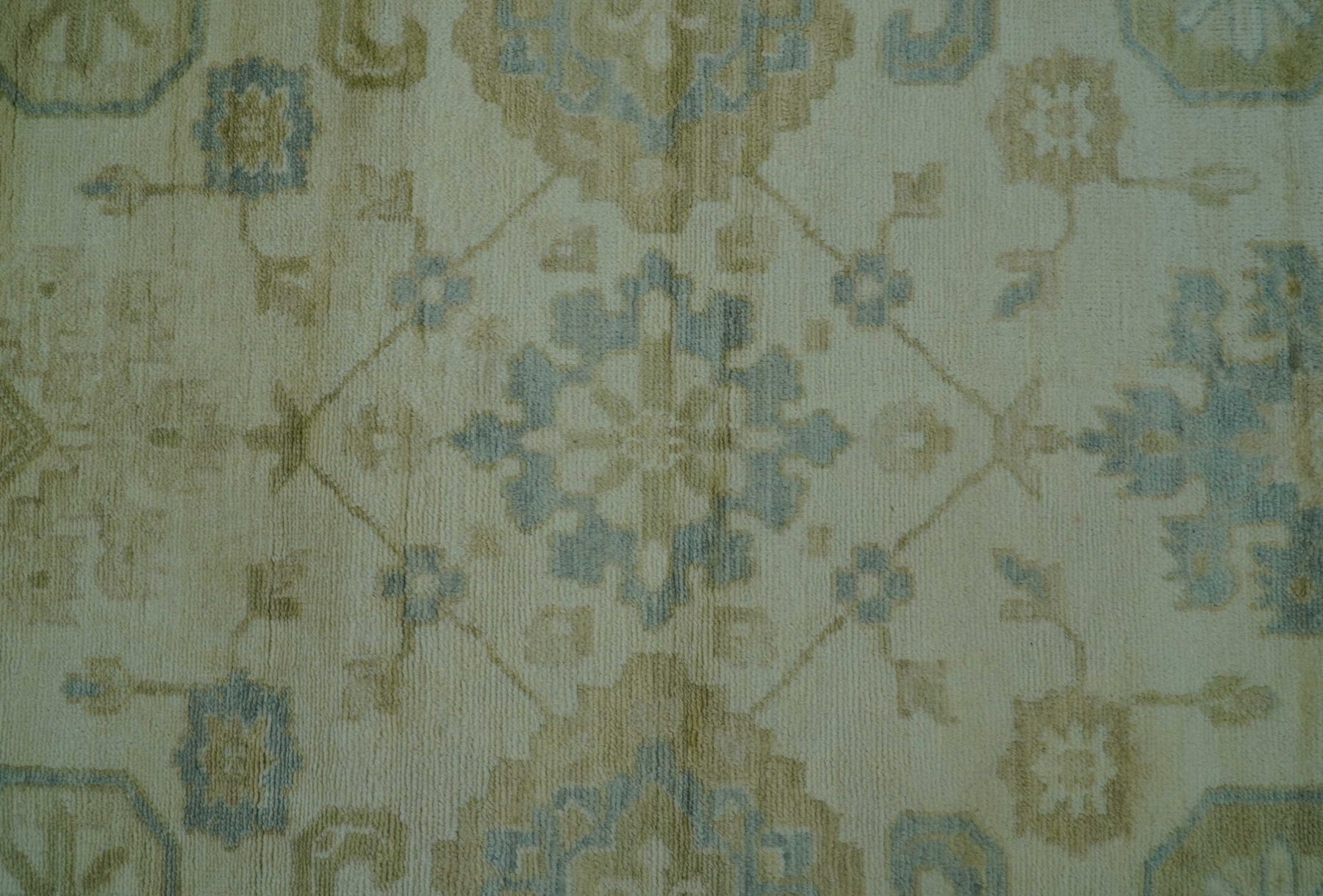 Hand Knotted Ivory And Blue Traditional Oushak Design 8x10 Wool Area Rug