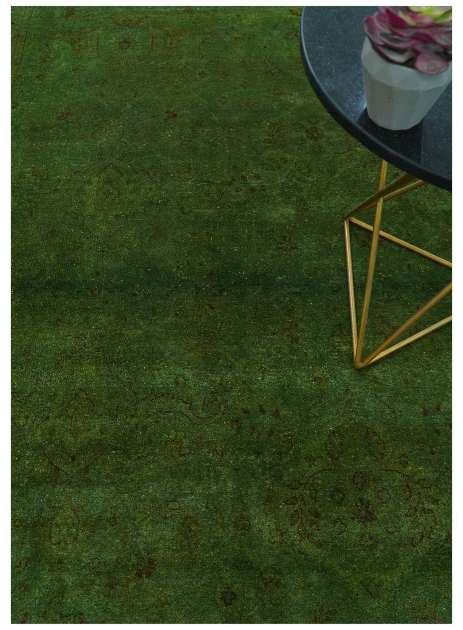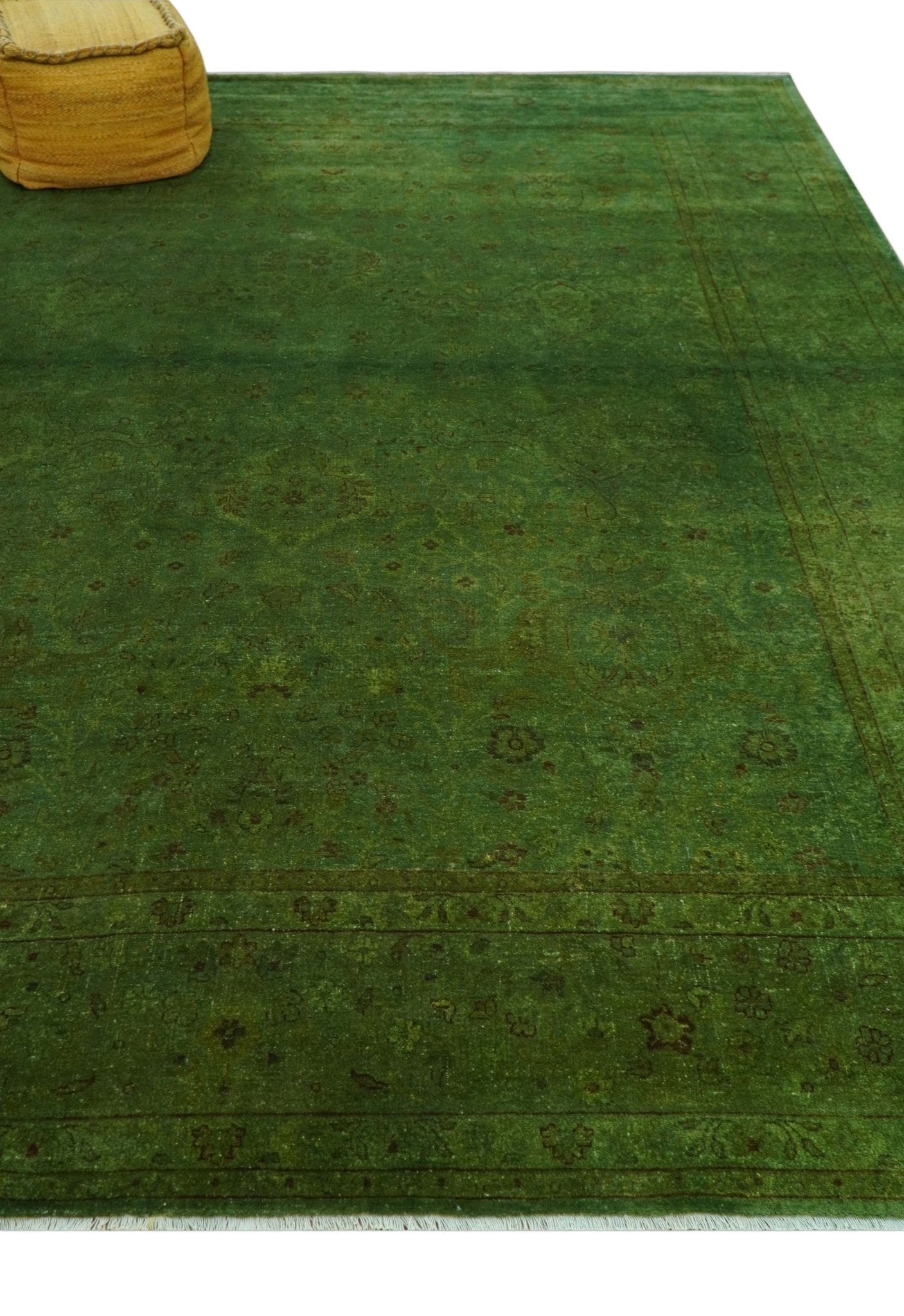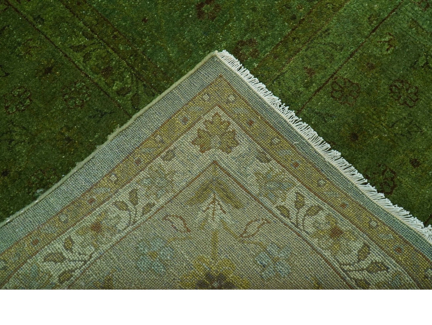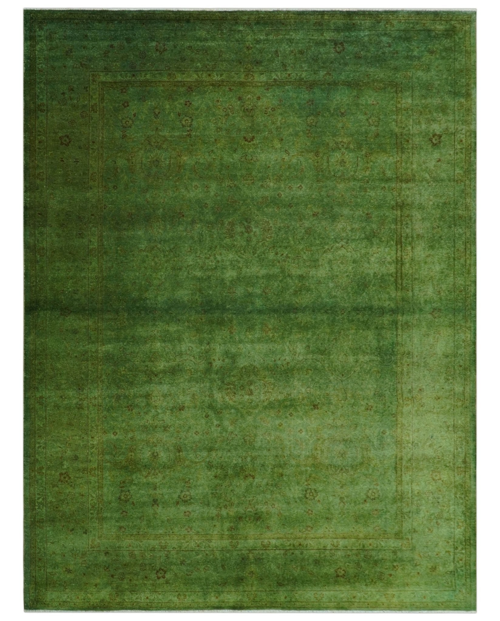 Hand Knotted Green Overdyed Traditional Oushak Design 9x12 Wool Area R