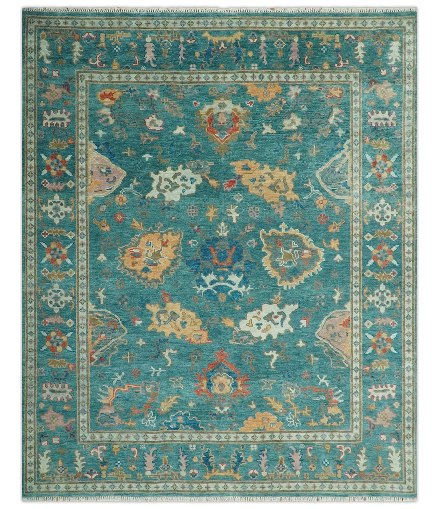 Hand Knotted Teal Traditional Oushak 8x10.4 wool area rug