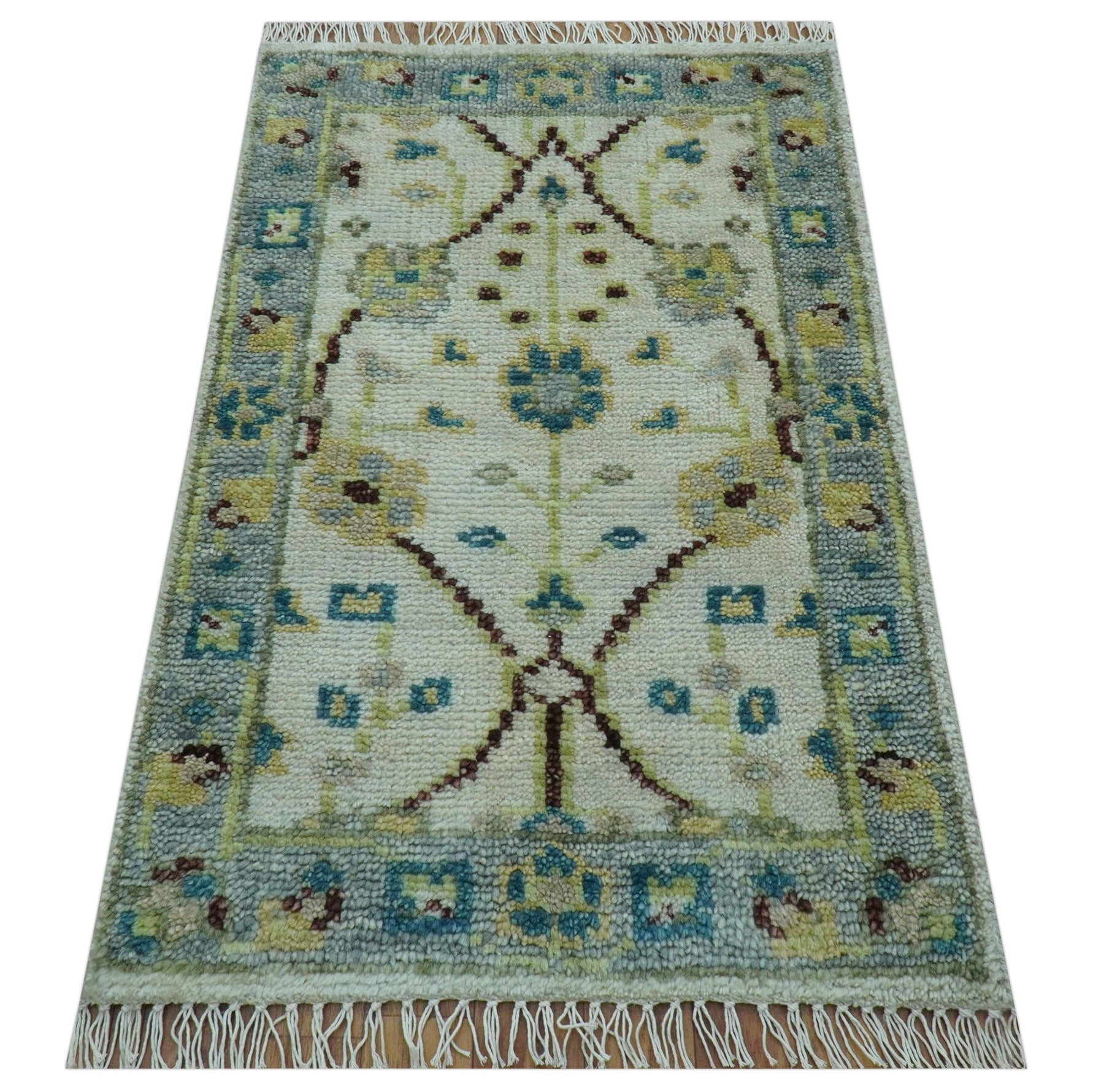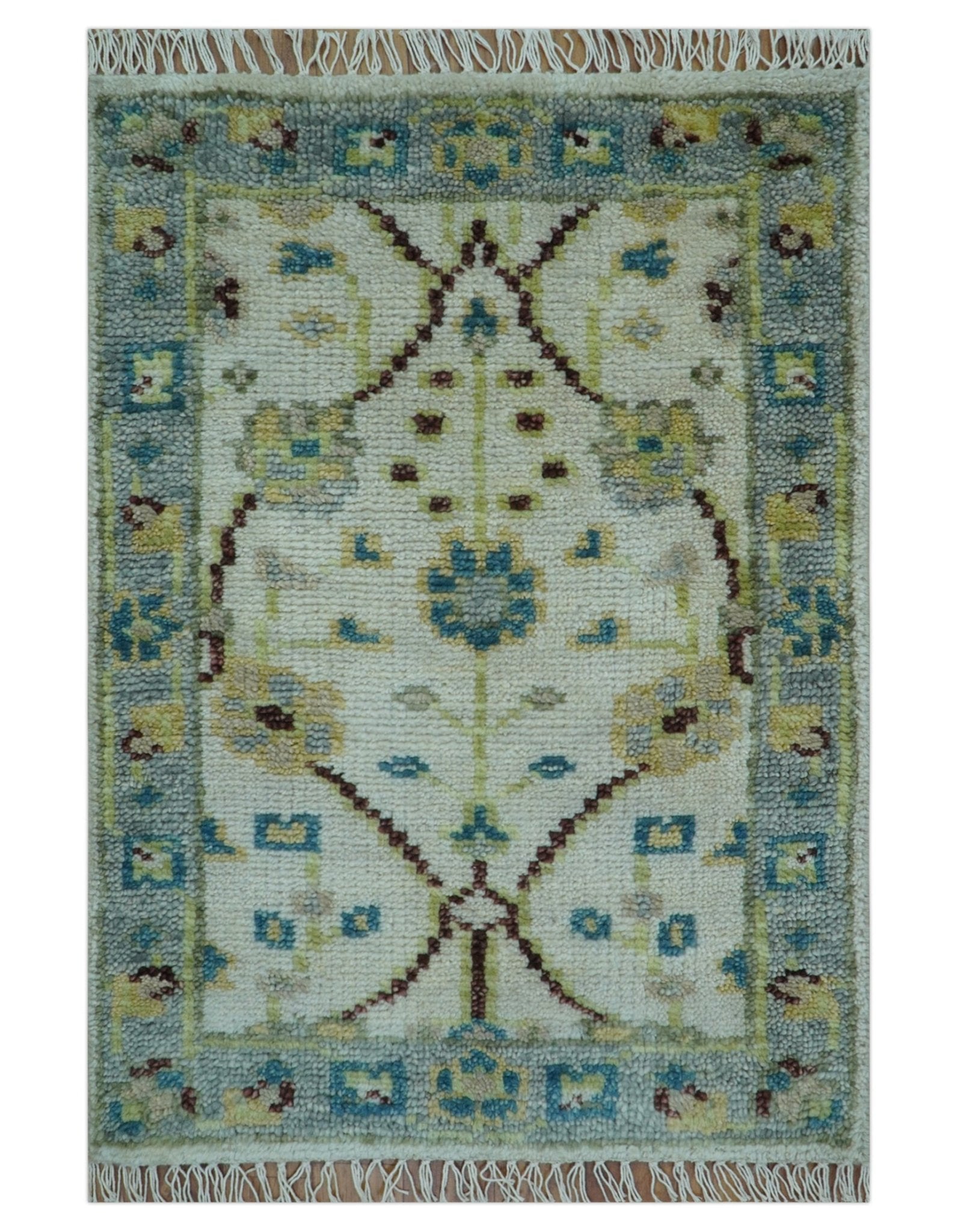 Hand knotted Traditional Oushak Design Blue And Ivory 2x3 Wool Area Rug