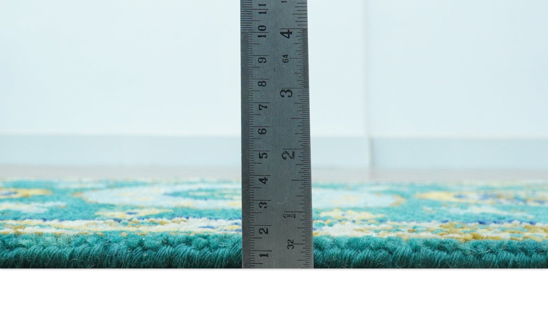 Expertly hand-knotted, this 2x3 traditional area rug features a striking combination of yellow and teal, bringing warmth and elegance to any space. Made from high-quality wool, this Khotan design rug offers durability and a timeless appeal, making it a beautiful addition to your home decor.