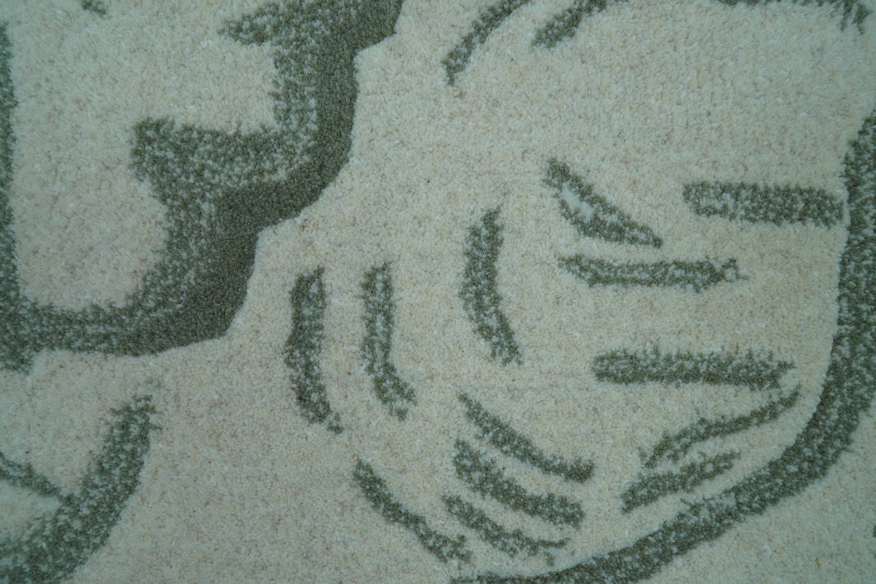 Crafted through hand-tufting techniques, this 2x3 wool rug showcases a striking white elephant motif. The natural wool fibers provide exceptional durability and comfort, making it an ideal accent piece for contemporary or eclectic interiors seeking distinctive animal-themed elegance.
