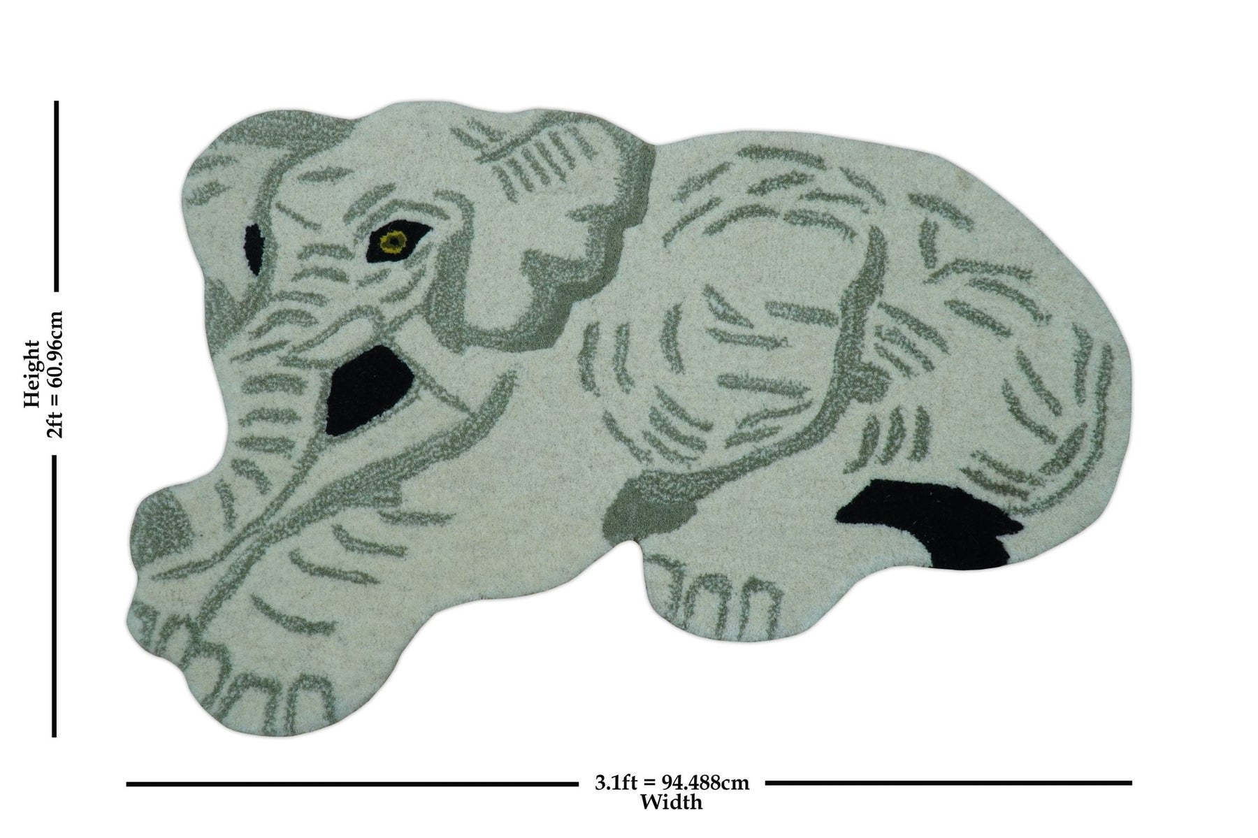 Hand Tufted White Animal Elephant 2x3 Wool Area Rug