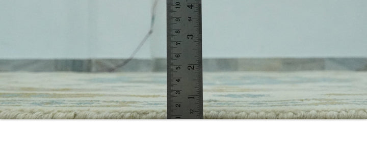 Expertly handcrafted with a custom design, this wool area rug features a timeless medallion pattern in ivory, olive, and teal. Its traditional hand-knotted construction provides durability and a luxurious feel underfoot. Elevate any space with this unique and versatile piece.