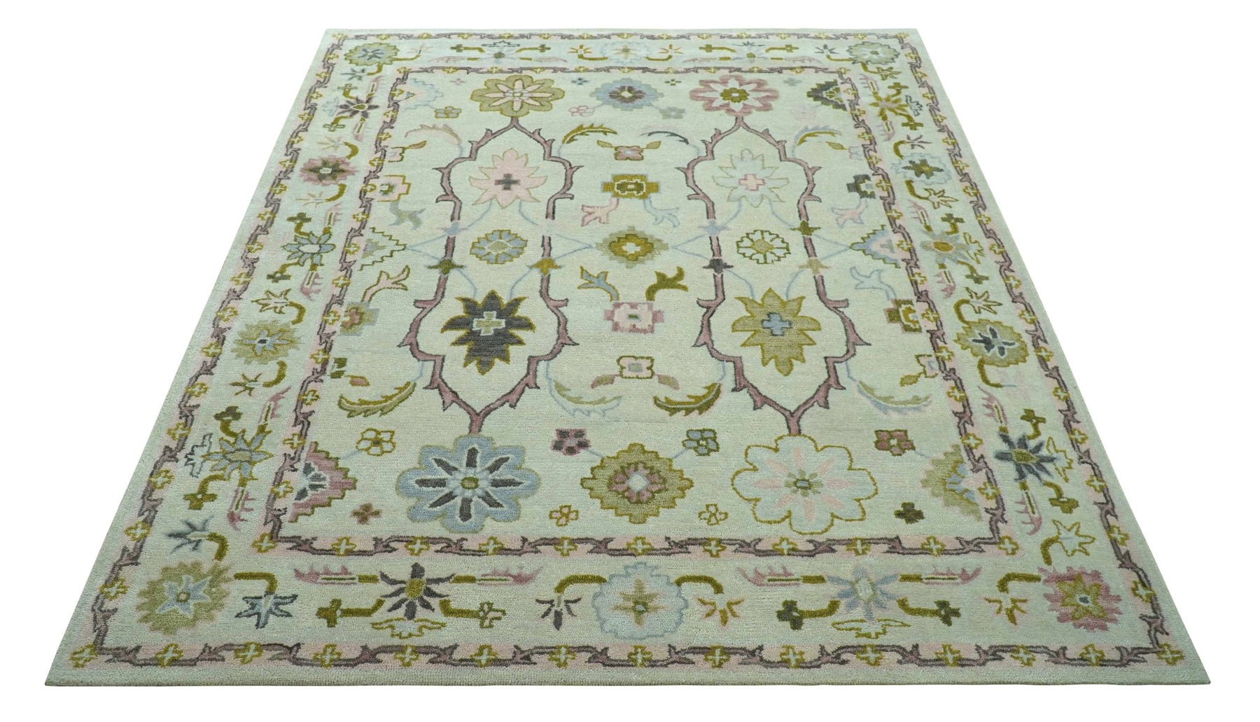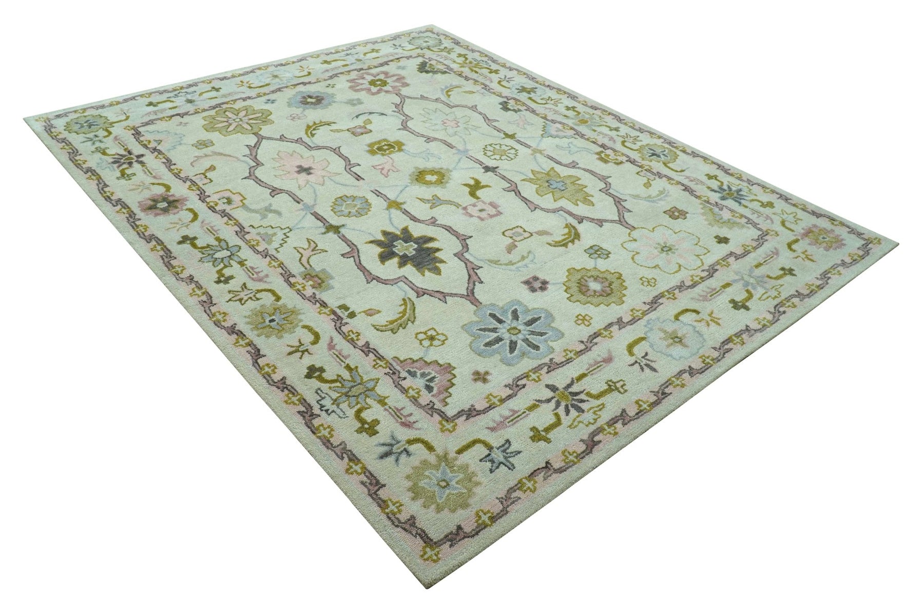 Ivory, Purple and Olive Floral Oushak Hand Tufted Custom Made wool rug