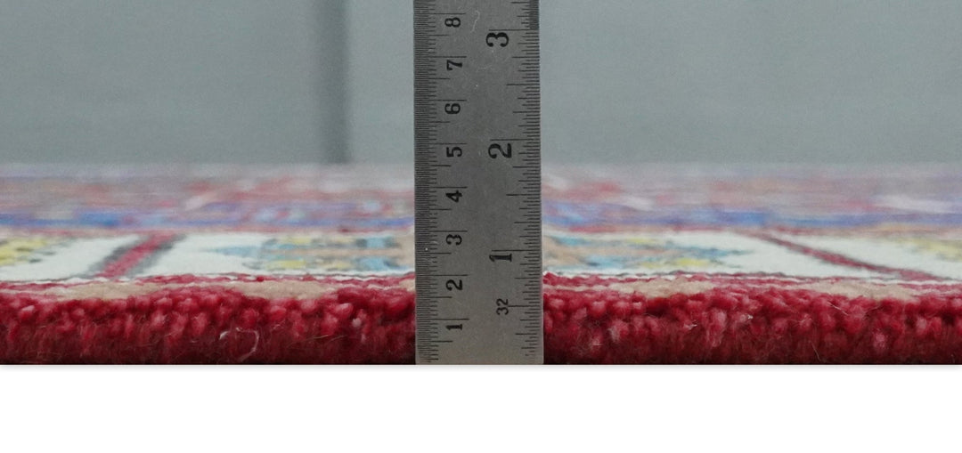 Custom Made Maroon, Blue and ivory Hand Knotted Traditional Wool Rug