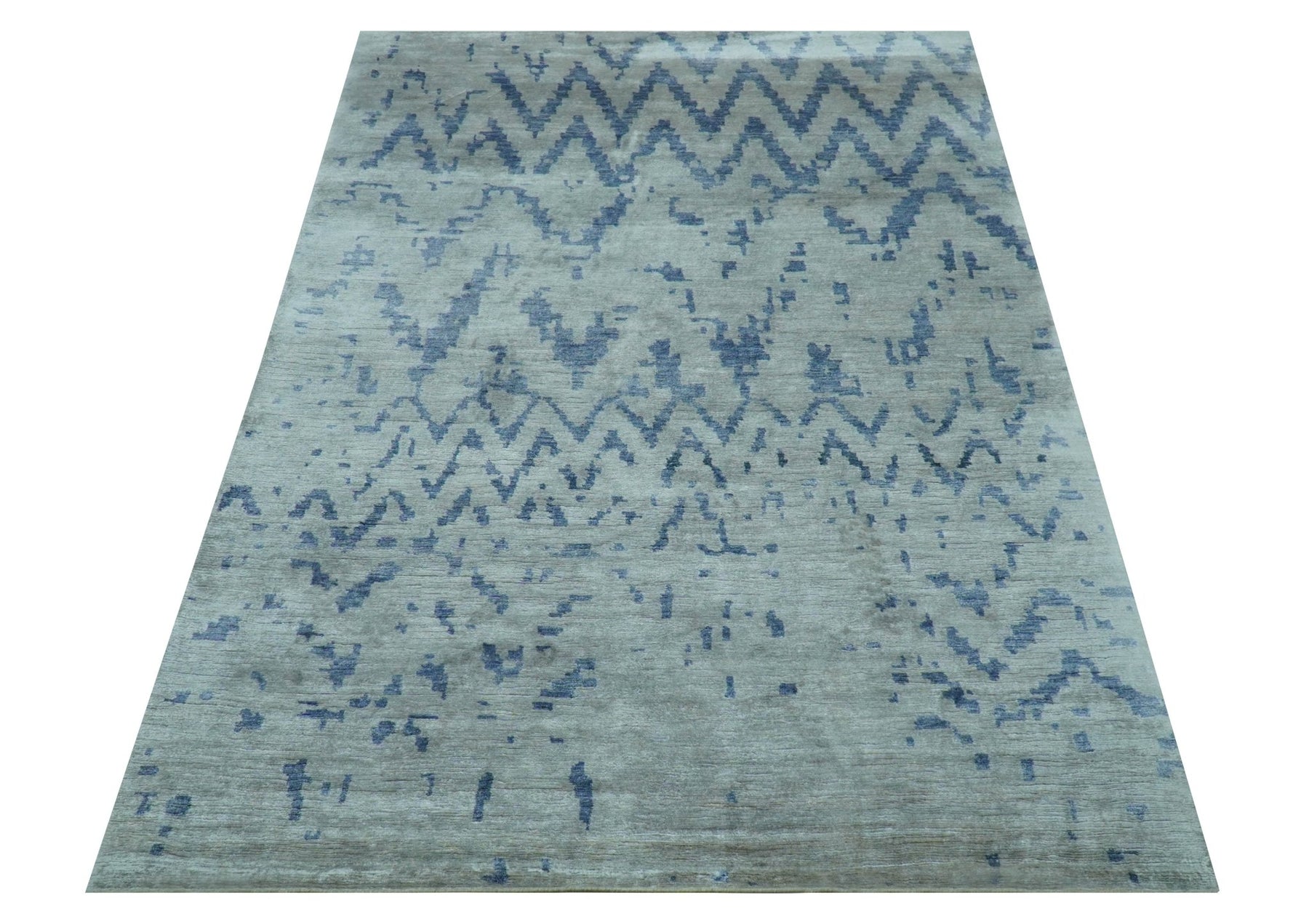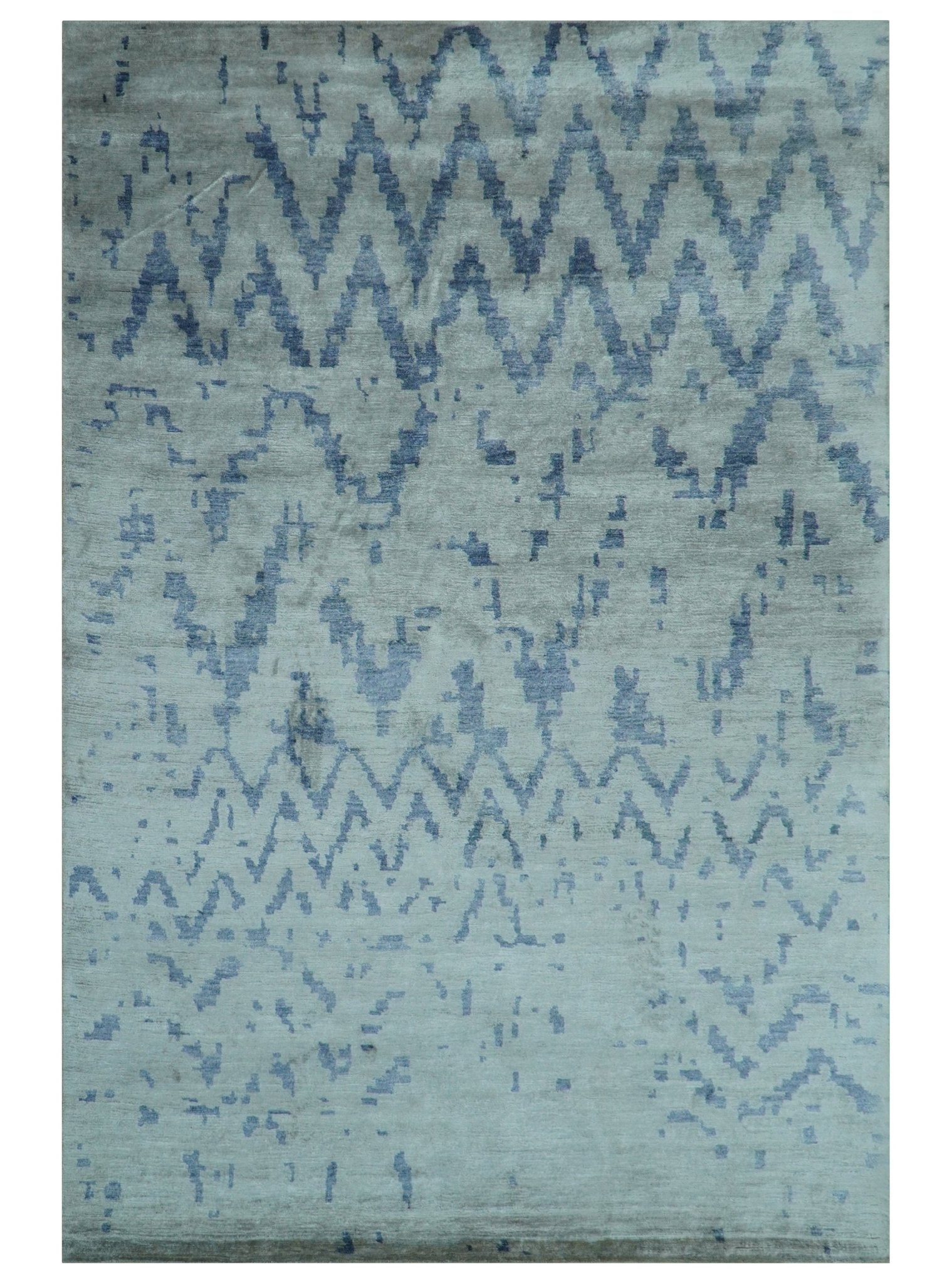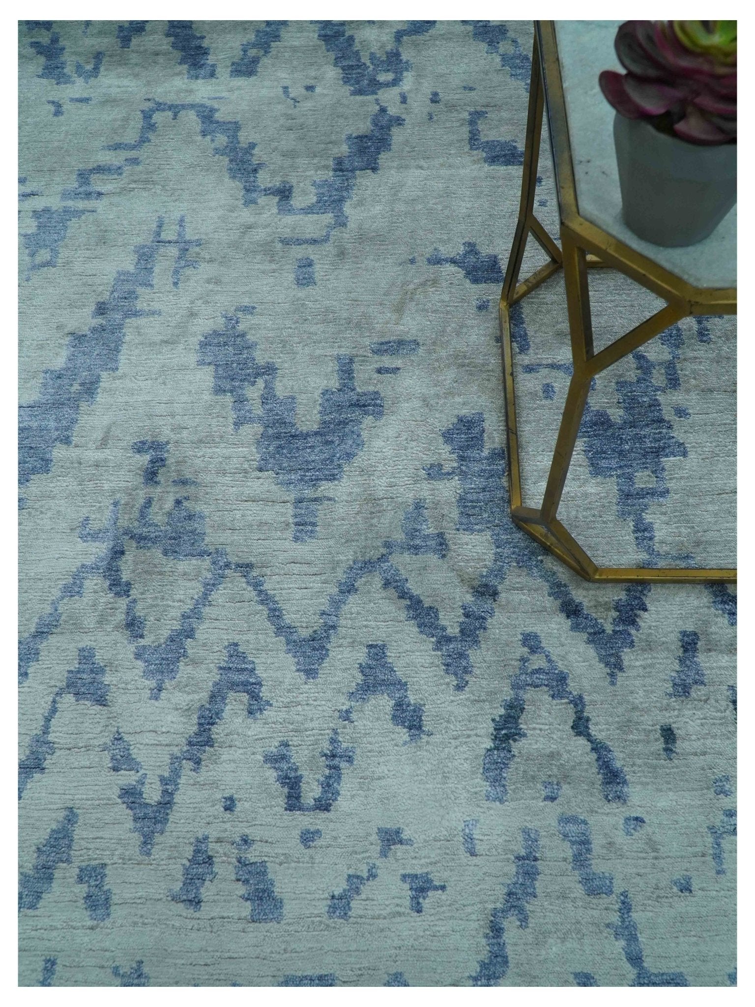 Modern Abstract Blue And Gray Hand Knotted 6x9 Bamboo Silk Area Rug