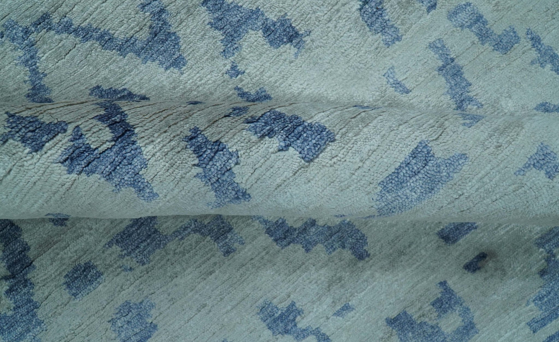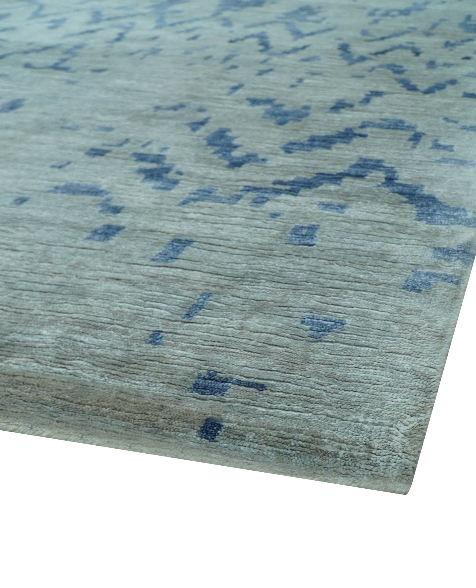 This premium 6x9 area rug presents a sophisticated abstract motif in harmonious blue and gray palettes. Expertly hand-knotted from superior bamboo silk, it offers exceptional tactile quality, dimensional complexity, and remarkable resilience—elevating modern spaces with artistic distinction.