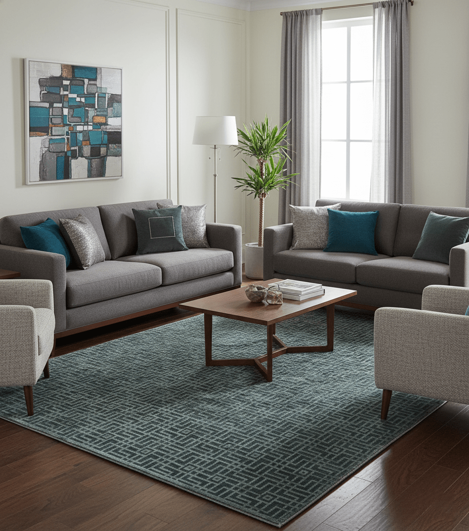Modern Geometric Design Dark Teal And Silver 8x10 Hand Knotted Wool And Art Silk Rug