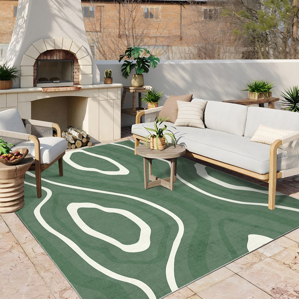Modern Abstract Green Machine Washable Cotton Area Rug