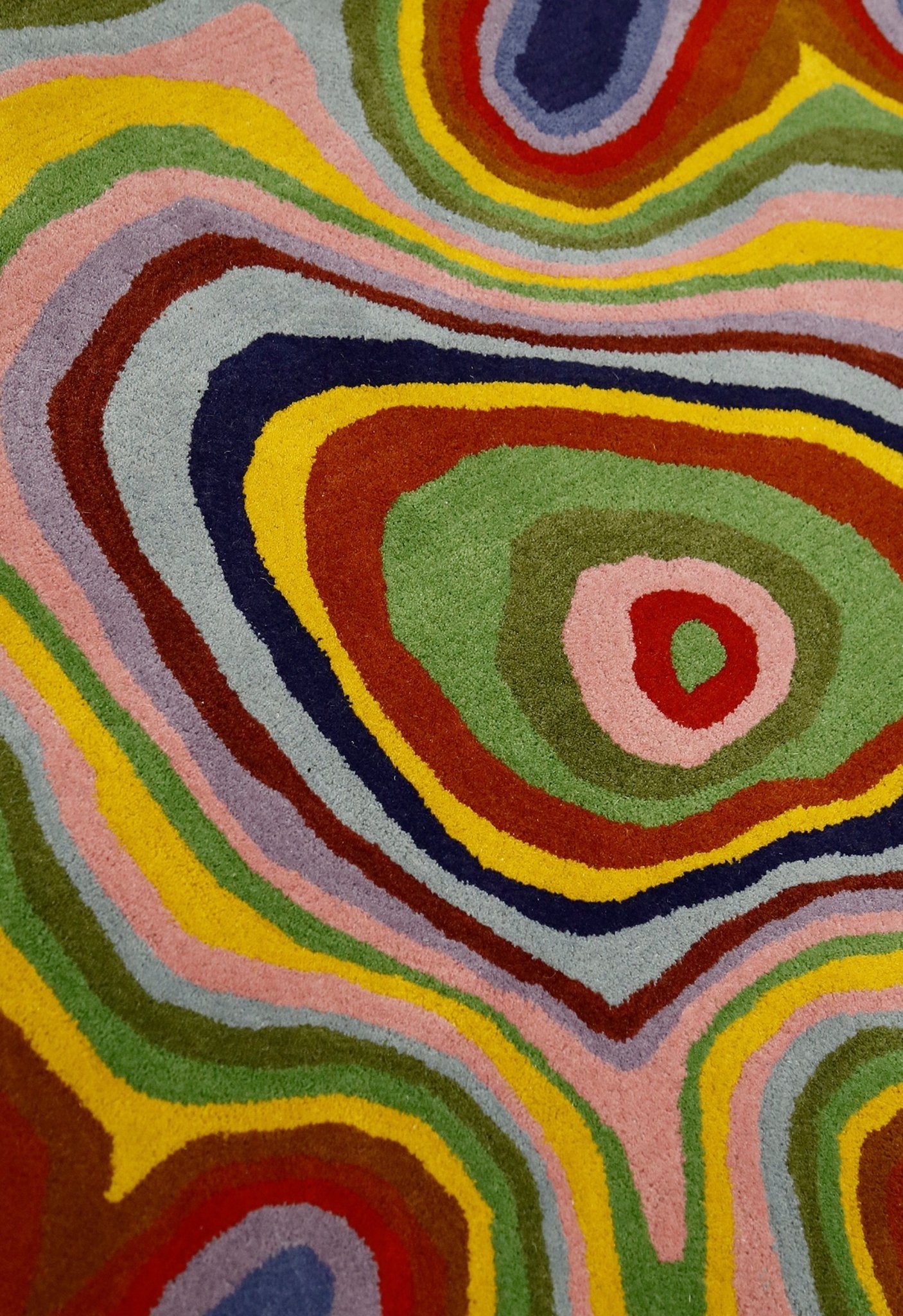 Expertly hand-tufted from pure wool, this 6x6 rug features a striking ripple pattern infused with bold, saturated hues. The dimensional design adds sophisticated visual interest to modern interiors while the natural fiber provides exceptional comfort and longevity for high-traffic areas.