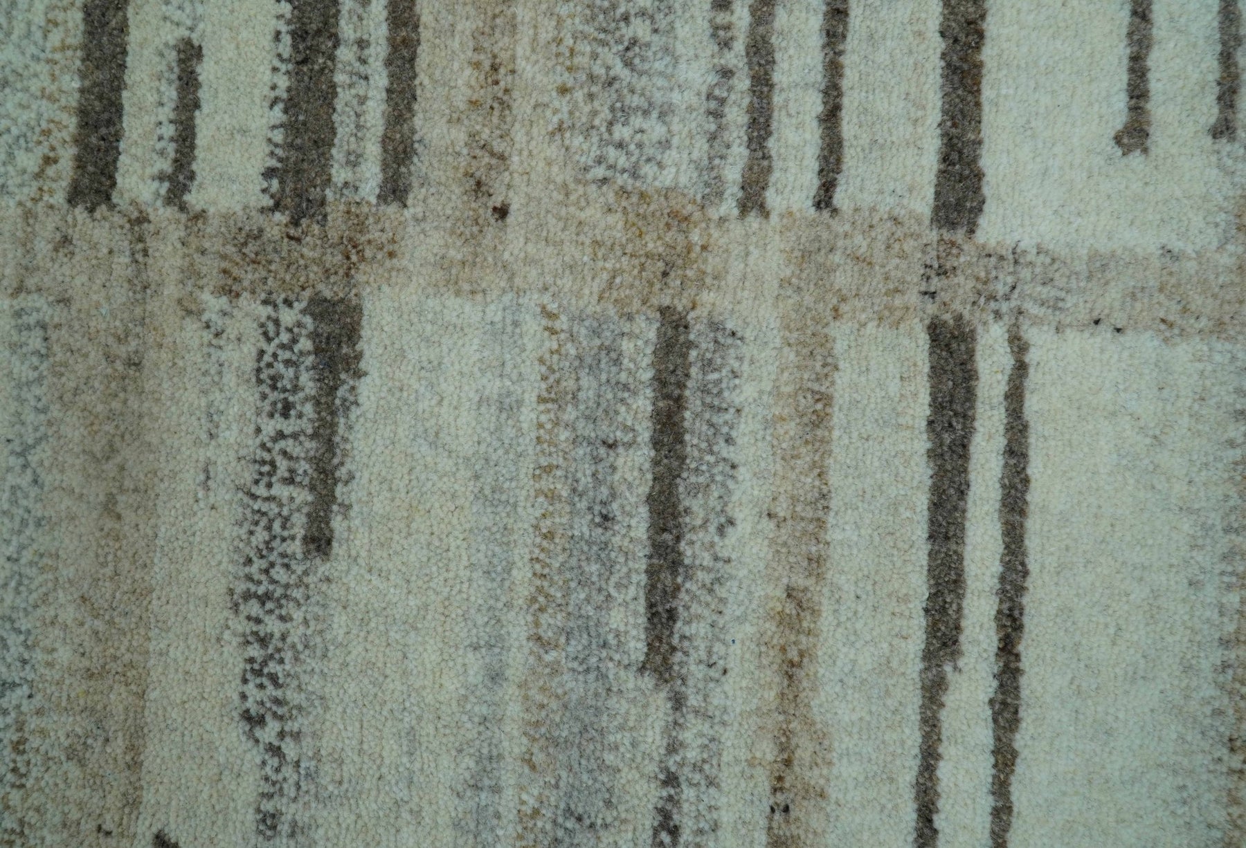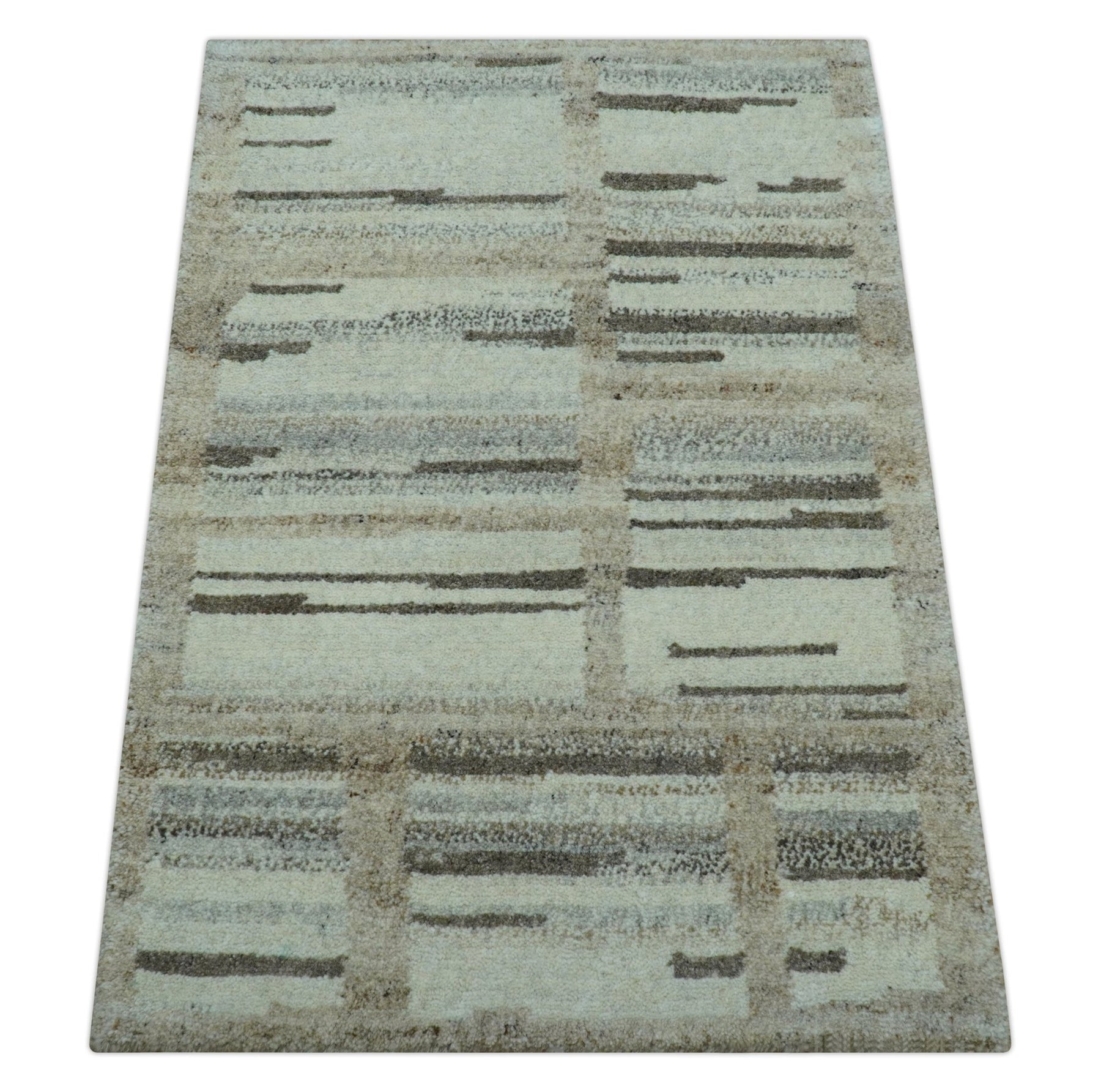 Modern Contemporary Beige Hand Knotted 2x3 Wool Area Rug