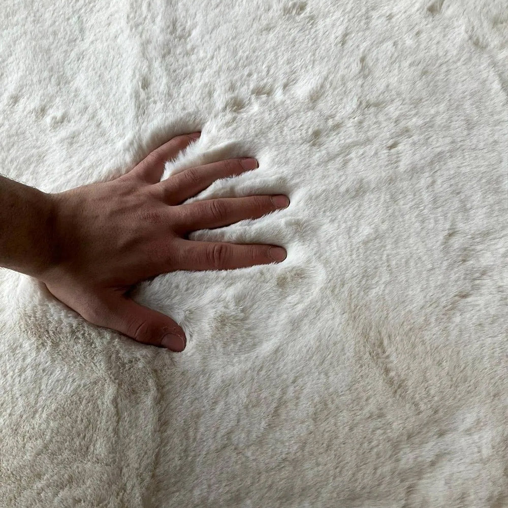 Modern Faux Rabbit White Machine Washable Silk Rug