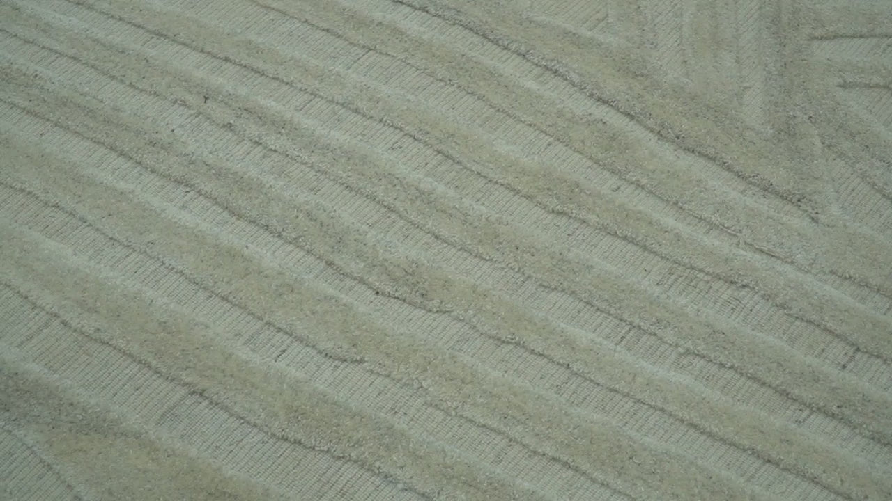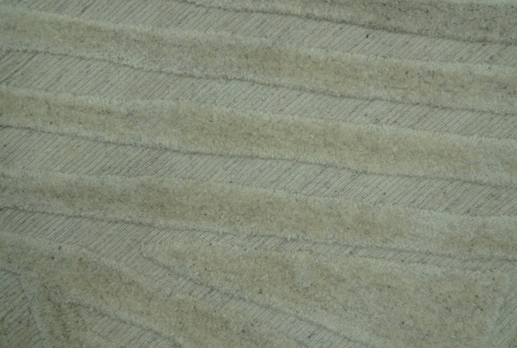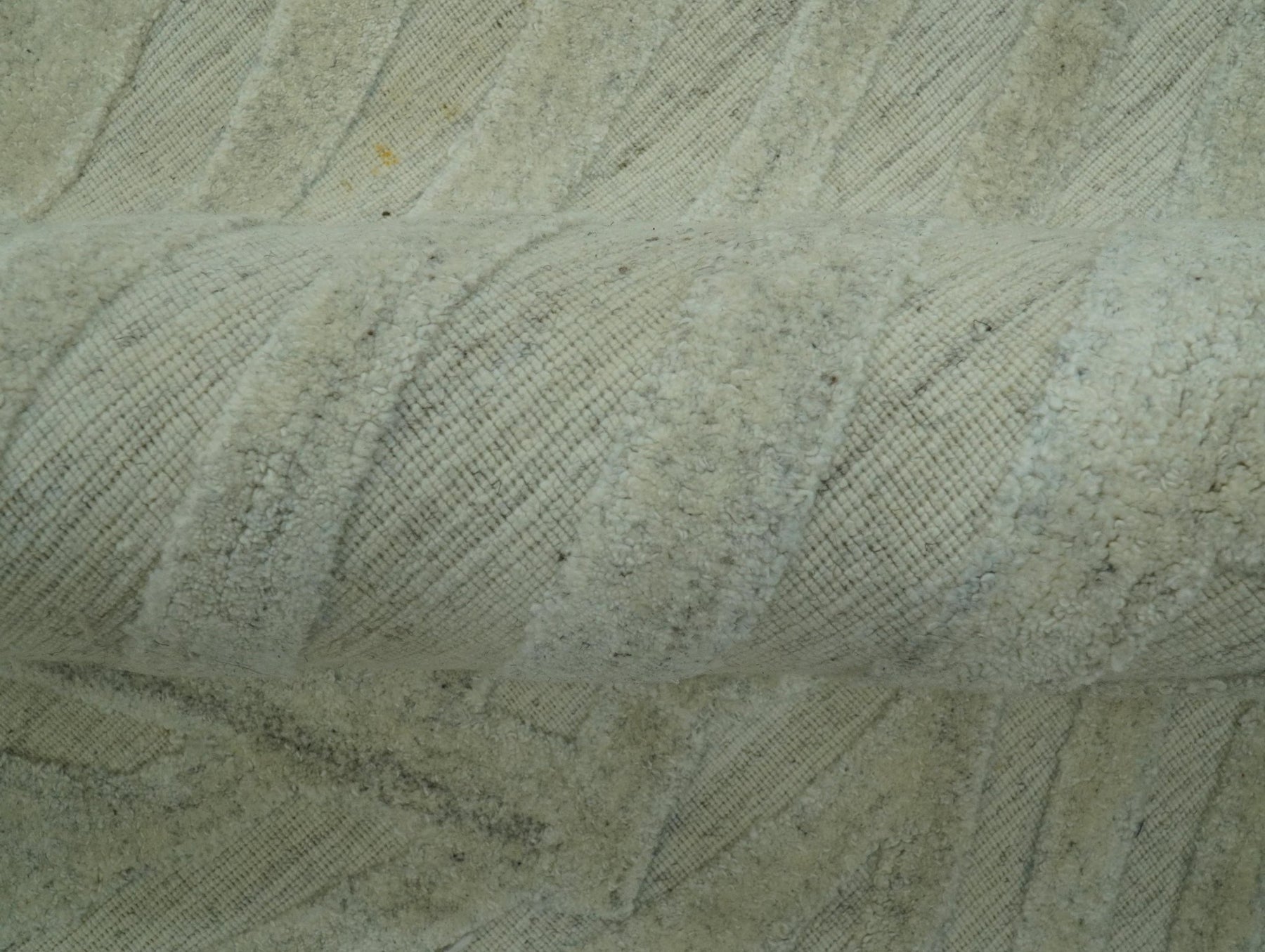 This 10x13 wool area rug features a modern geometrical silver design, meticulously hand-knotted for exceptional craftsmanship. Its durable wool fibers provide softness and longevity, making it an ideal statement piece that enhances contemporary interiors with both style and enduring quality.