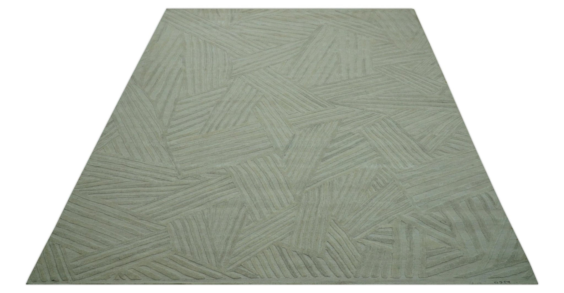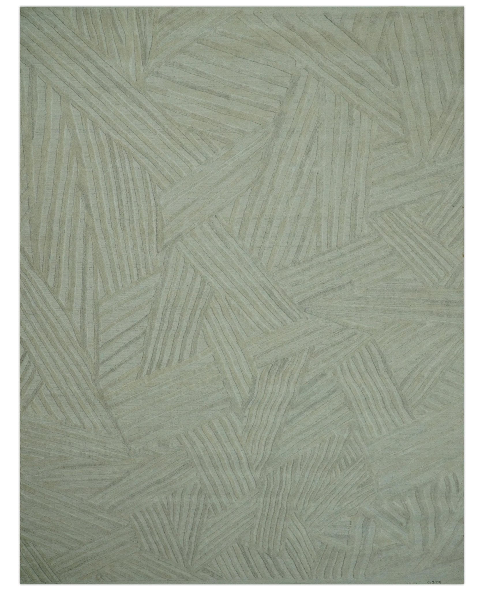 Modern Geometrical Pattern Silver Hand Knotted 10x13 Wool Area Rug