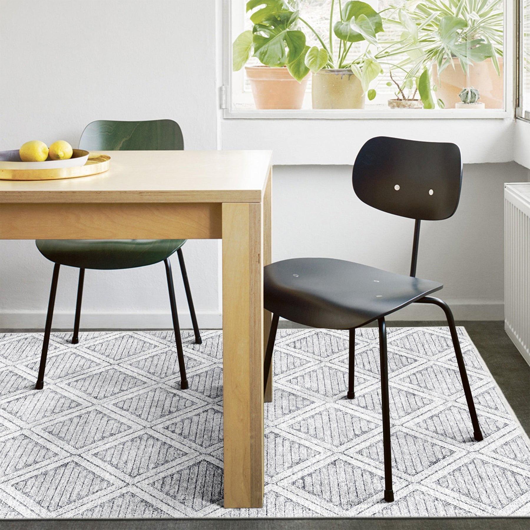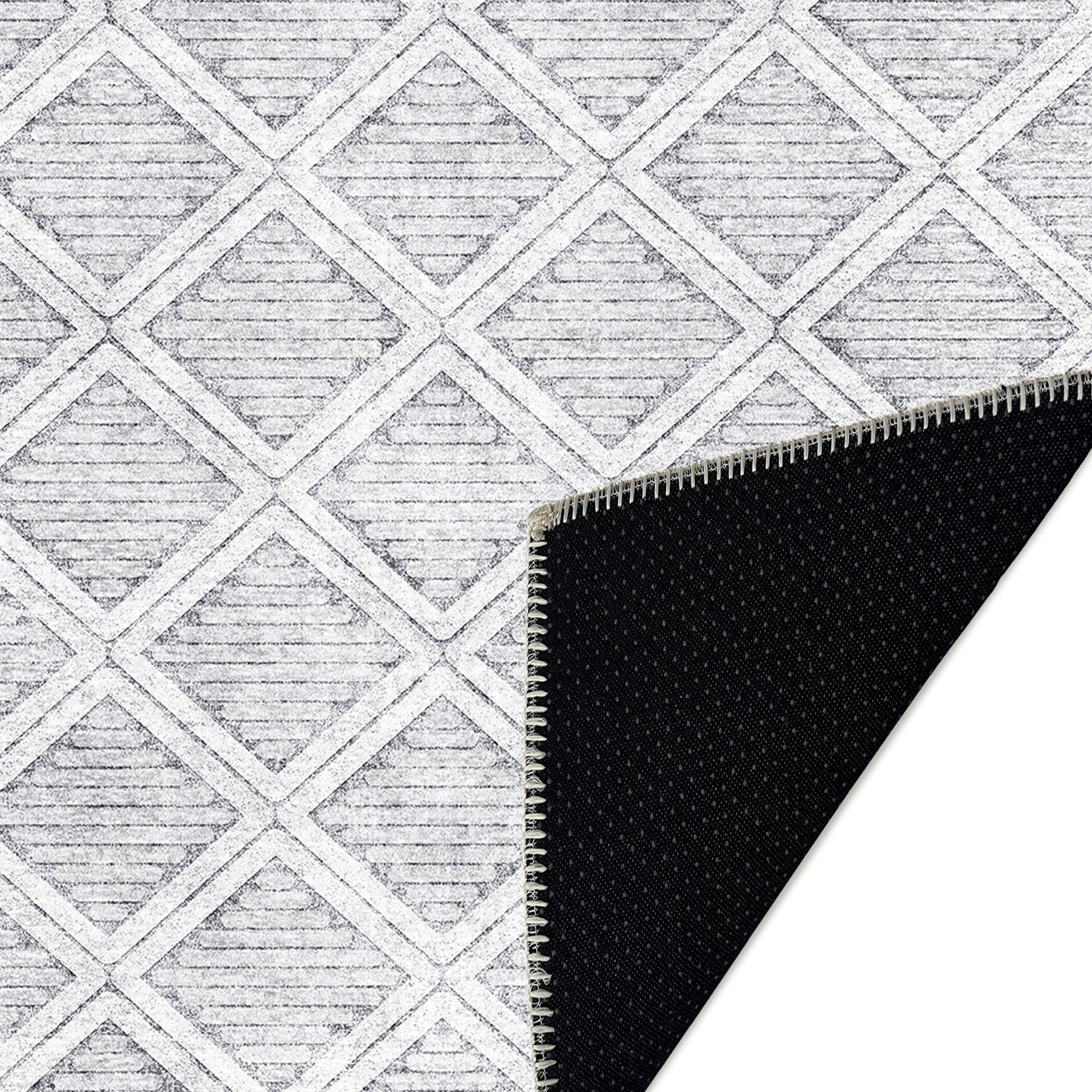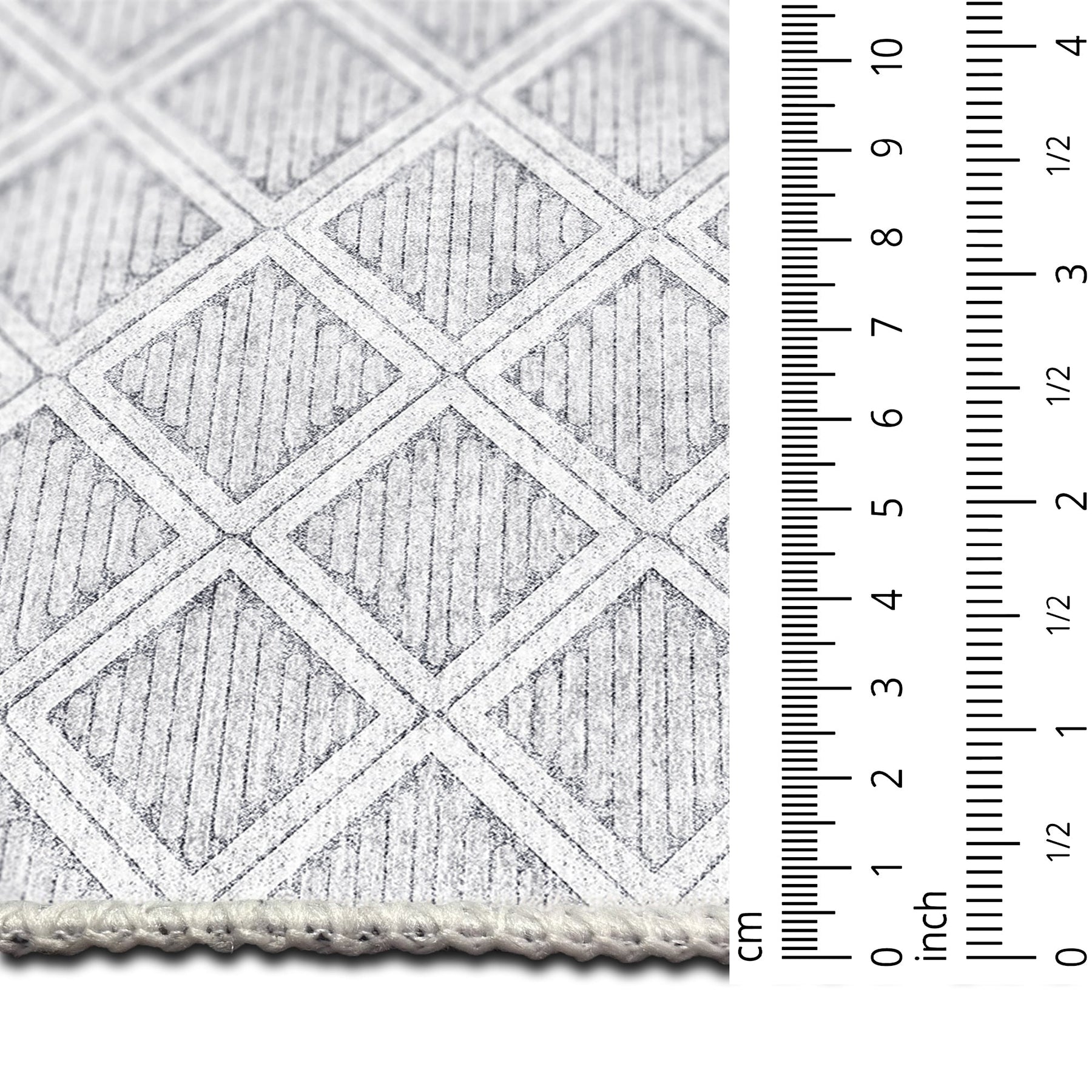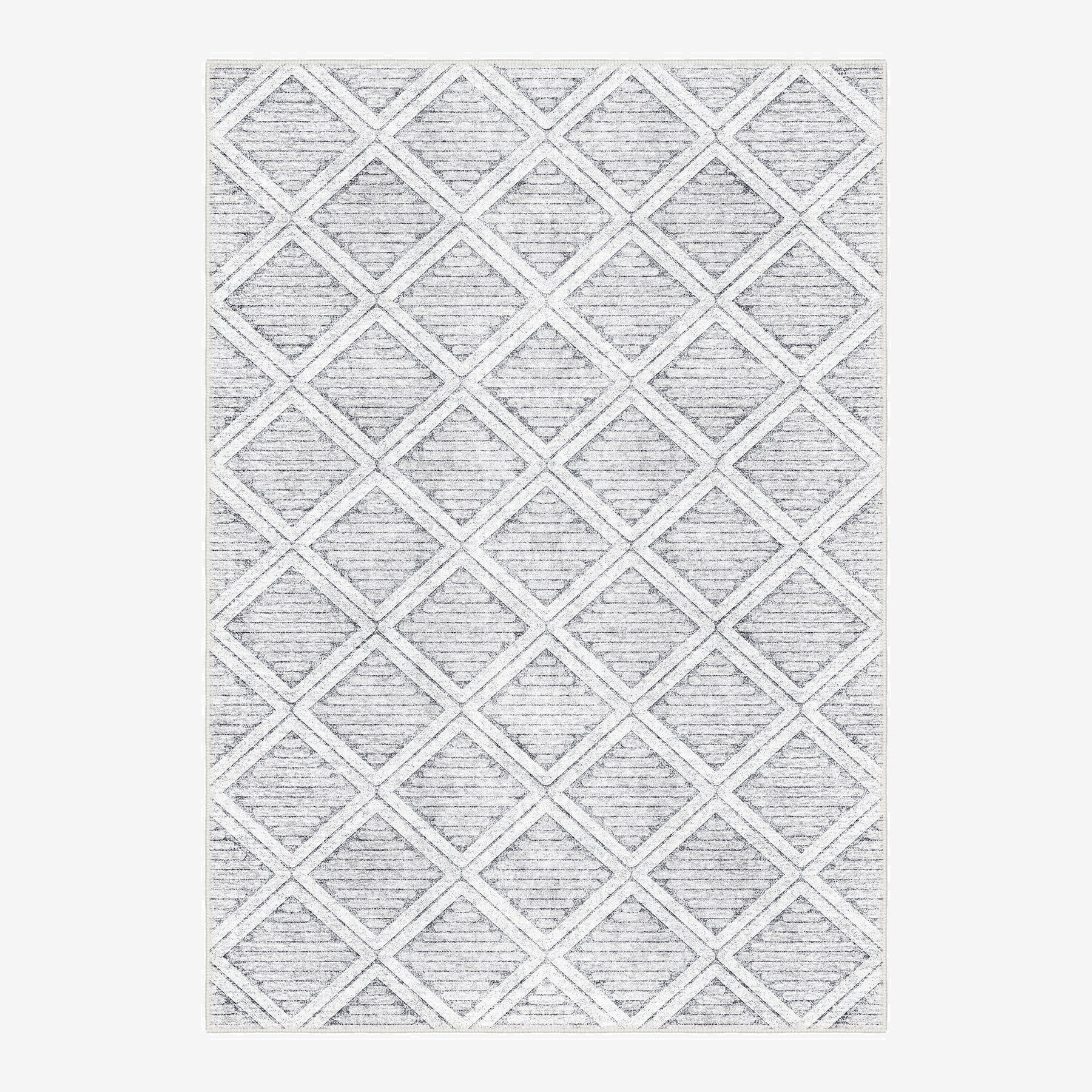 Modern Geometrical Silver Machine Washable Cotton Area Rug