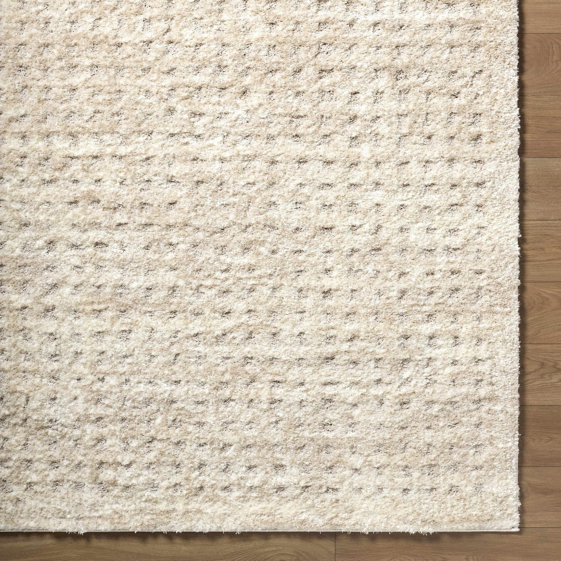 Modern Grid Pattern Ivory Machine Woven Rug