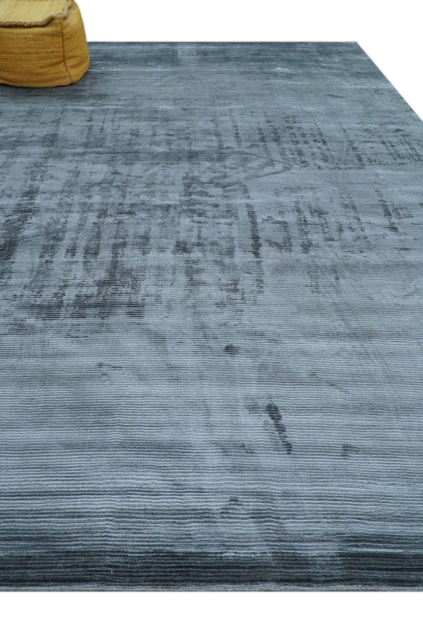 Modern Solid Design Blue Hand Loom 8.8x12 Art Silk Area Rug