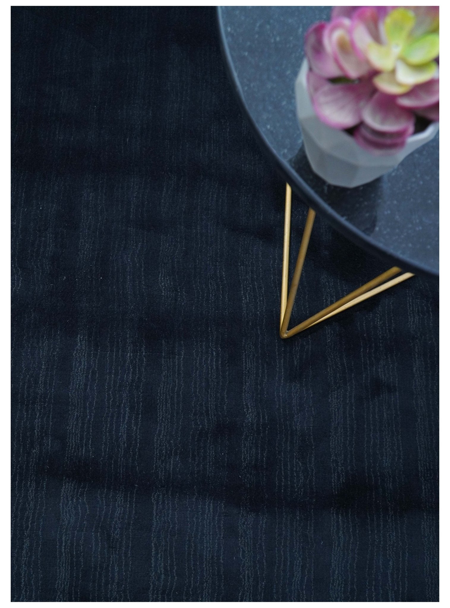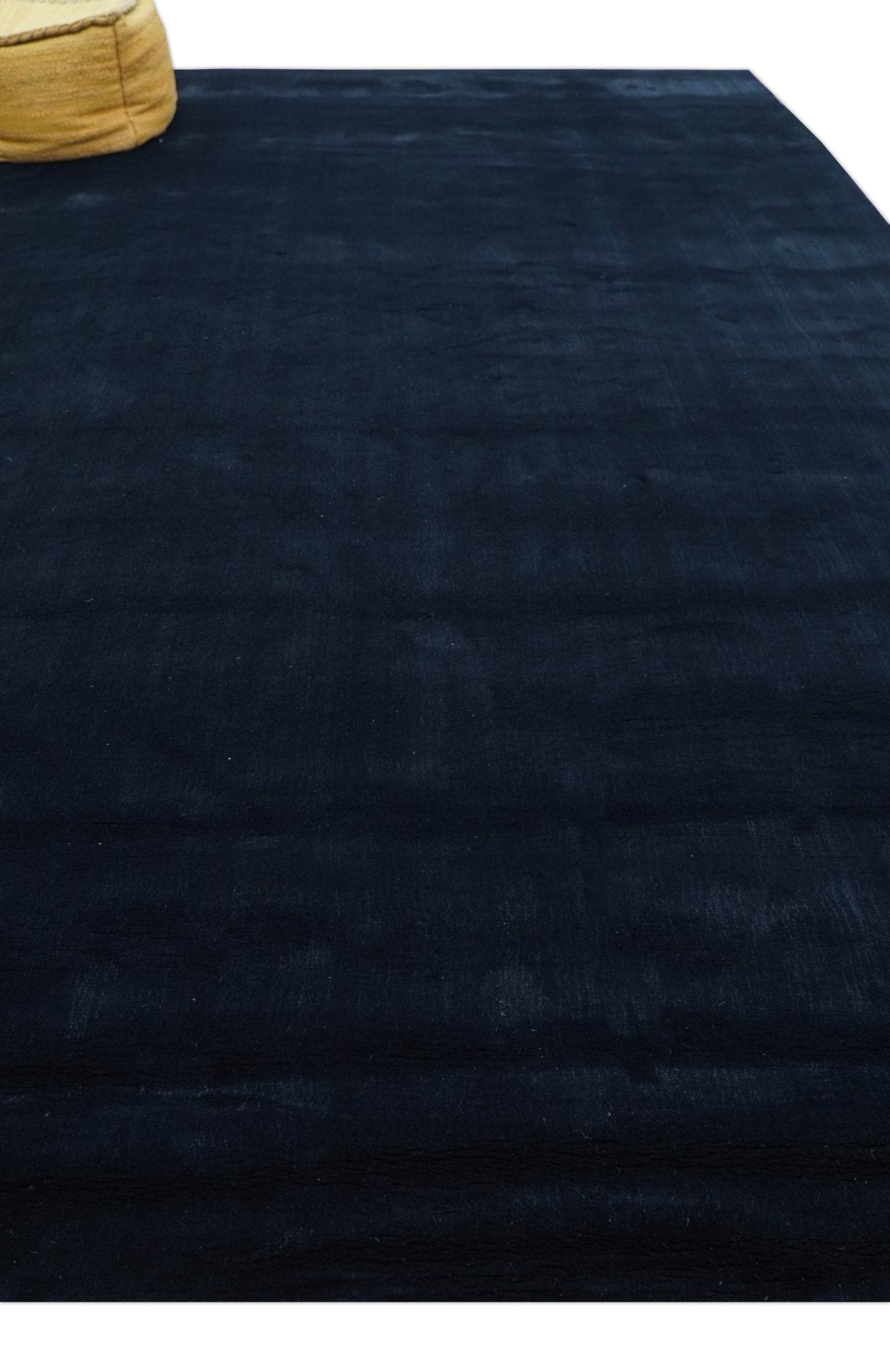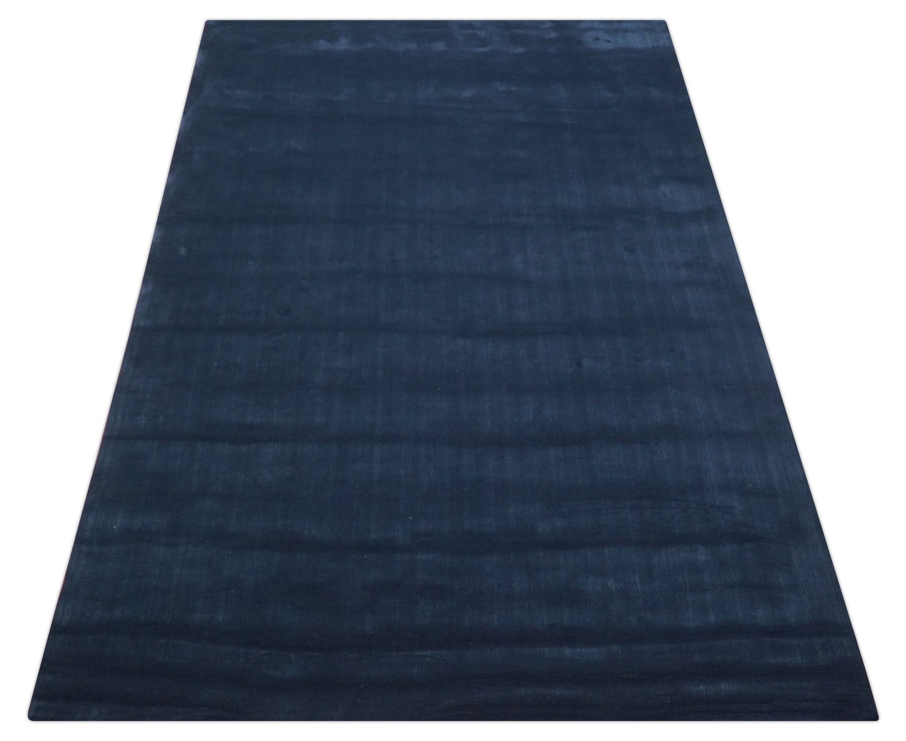 Modern Solid Design Navy Blue Hand Loom 8.9x12.8 Art Silk Rug