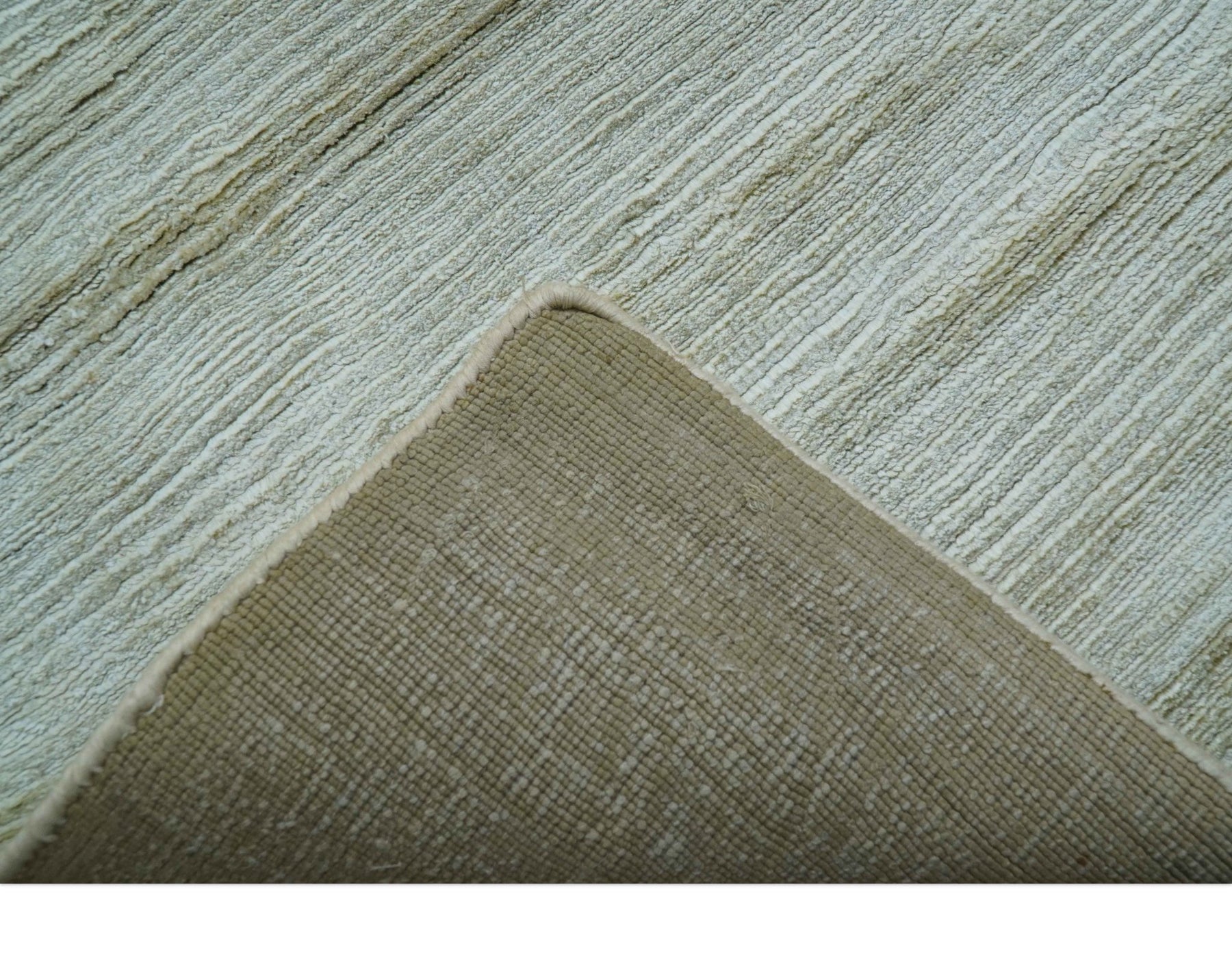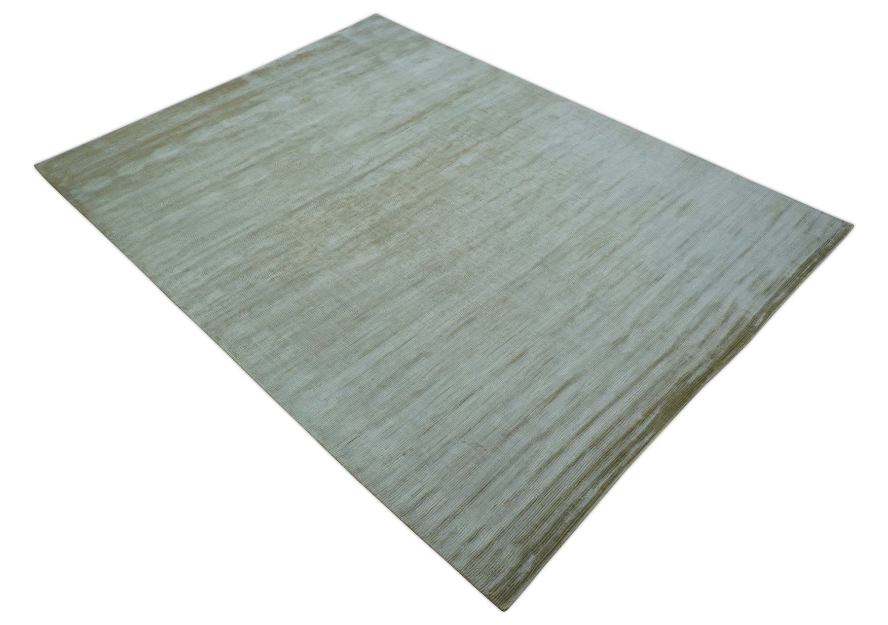 Modern Solid Design Silver And Green Hand Loom 9.4x13 Art Silk Area Rug