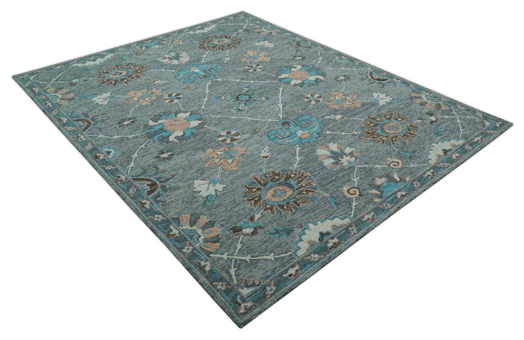 Oushak Design Gray, Blue And Brown Hand Tufted Custom Made wool rug