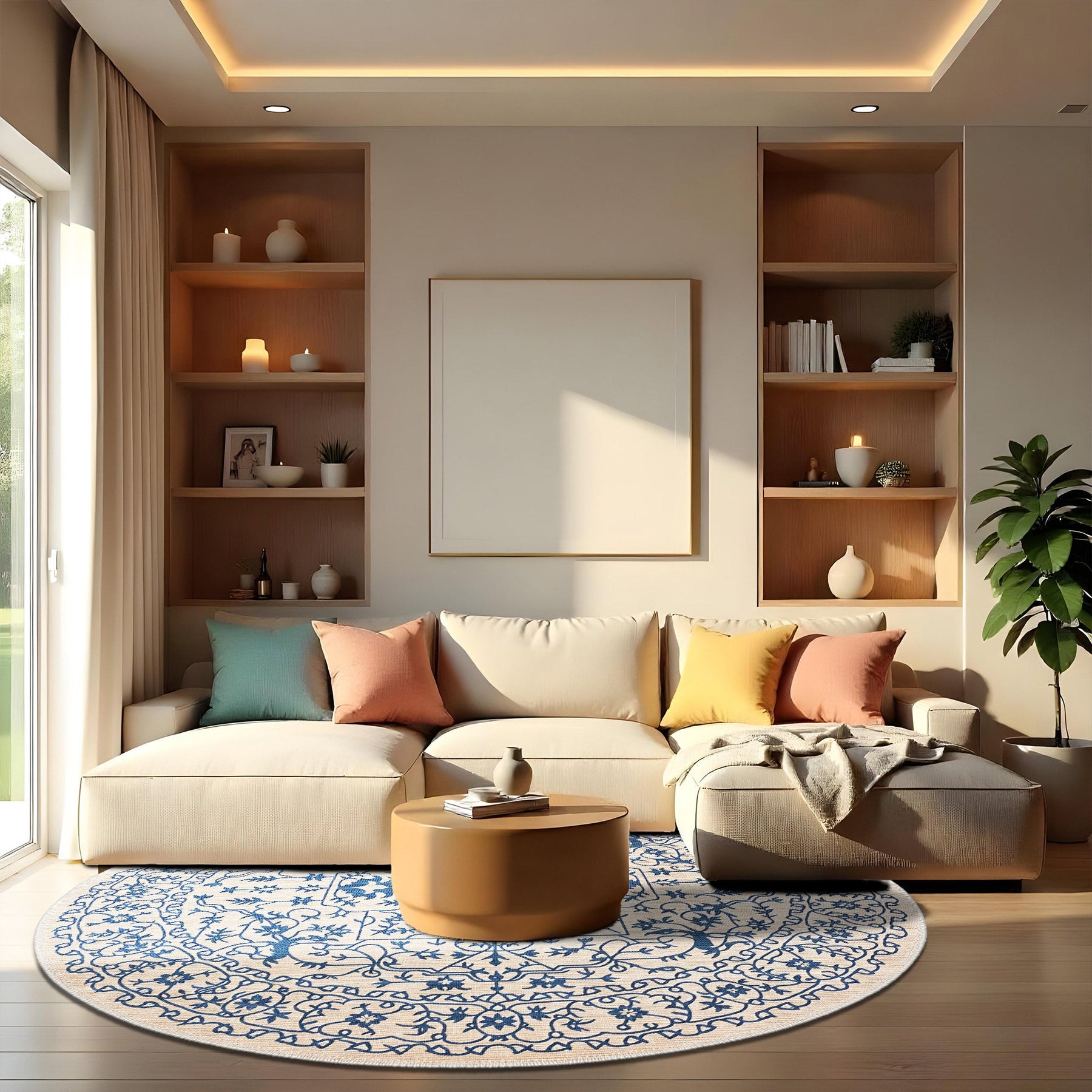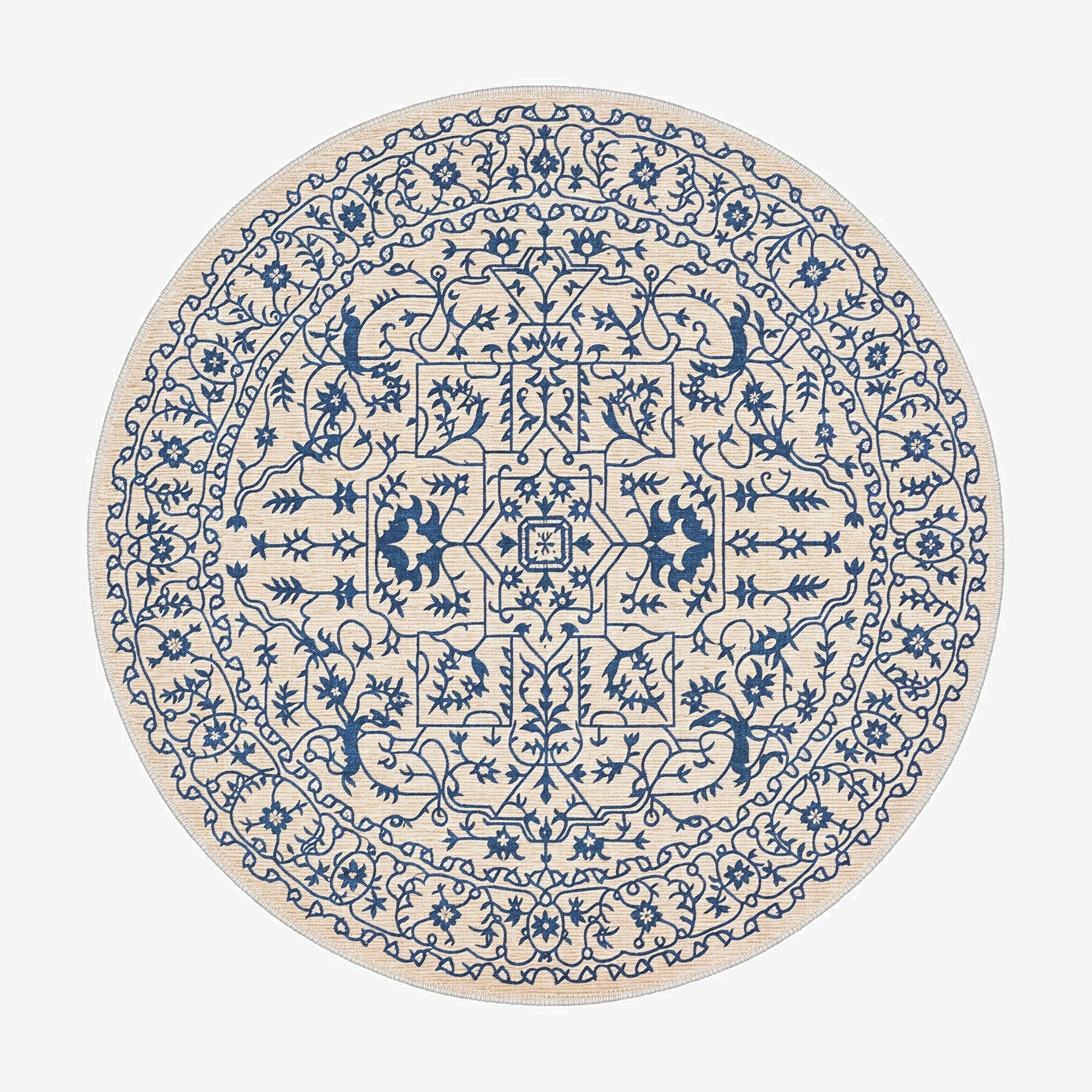 Elevate your interior with this sophisticated traditional area rug featuring a harmonious blend of blue and beige hues. Constructed from premium cotton, it delivers lasting durability and visual elegance. The machine-washable design eliminates tedious cleaning, making maintenance simple and convenient while preserving the rug's rich color and texture for years.