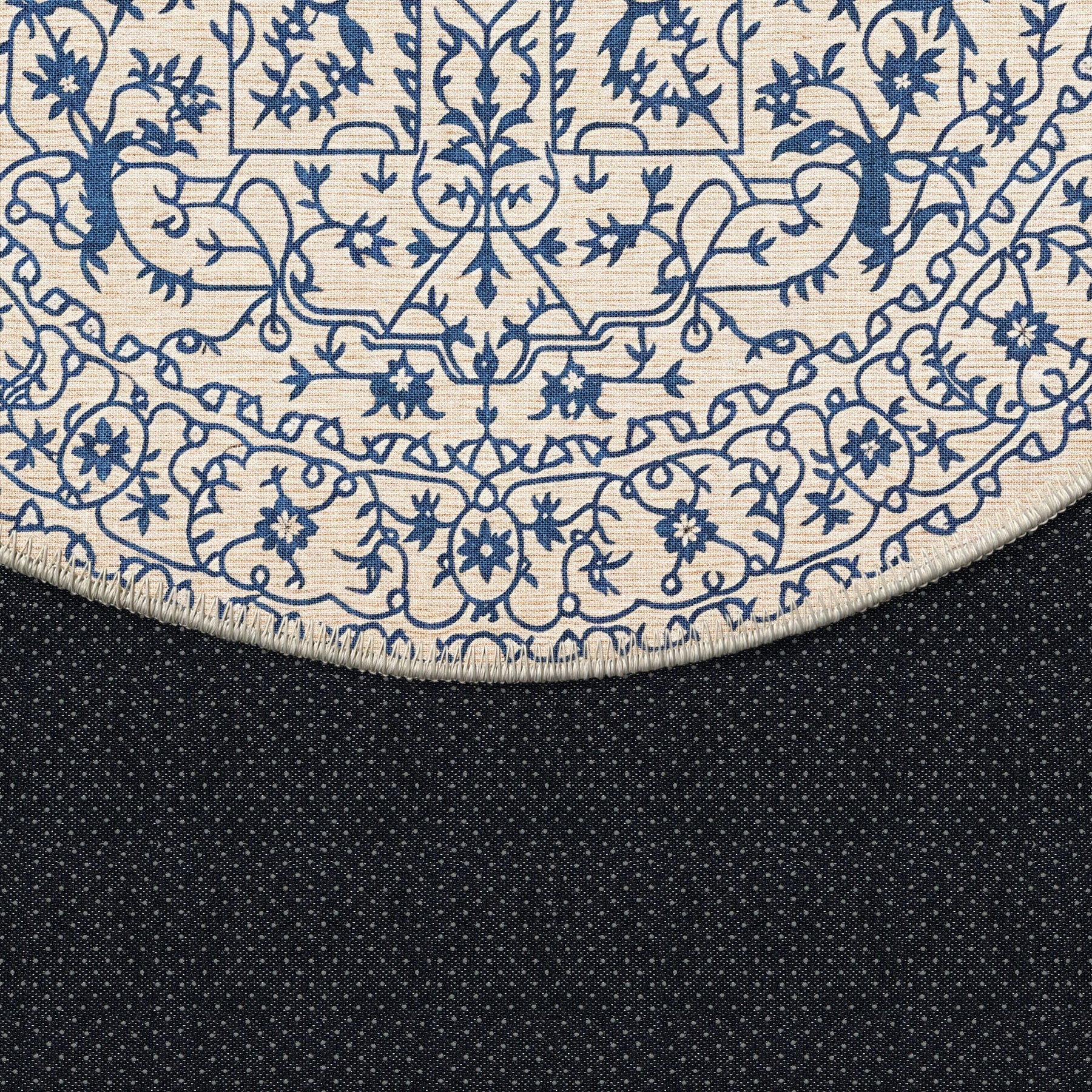 Traditional Blue And Beige Machine Washable Cotton Area Rug