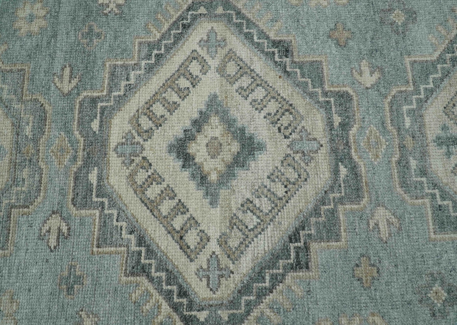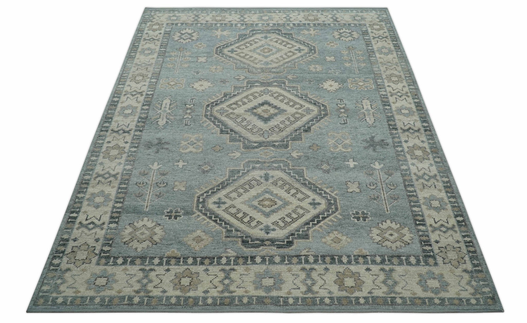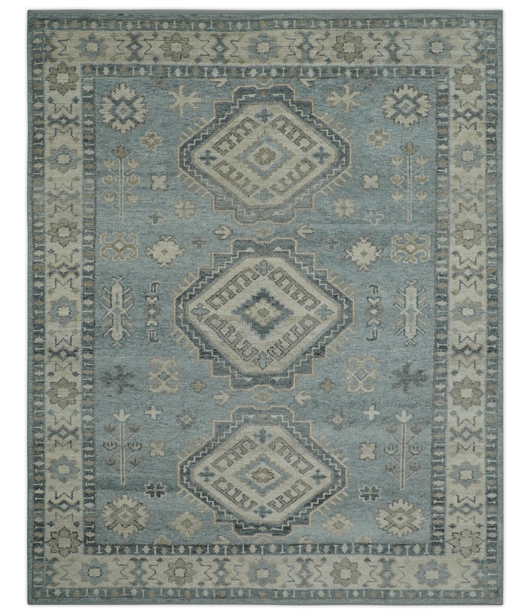 Traditional Medallions Design Blue And Beige Custom Made Wool And Linen Blend Rug