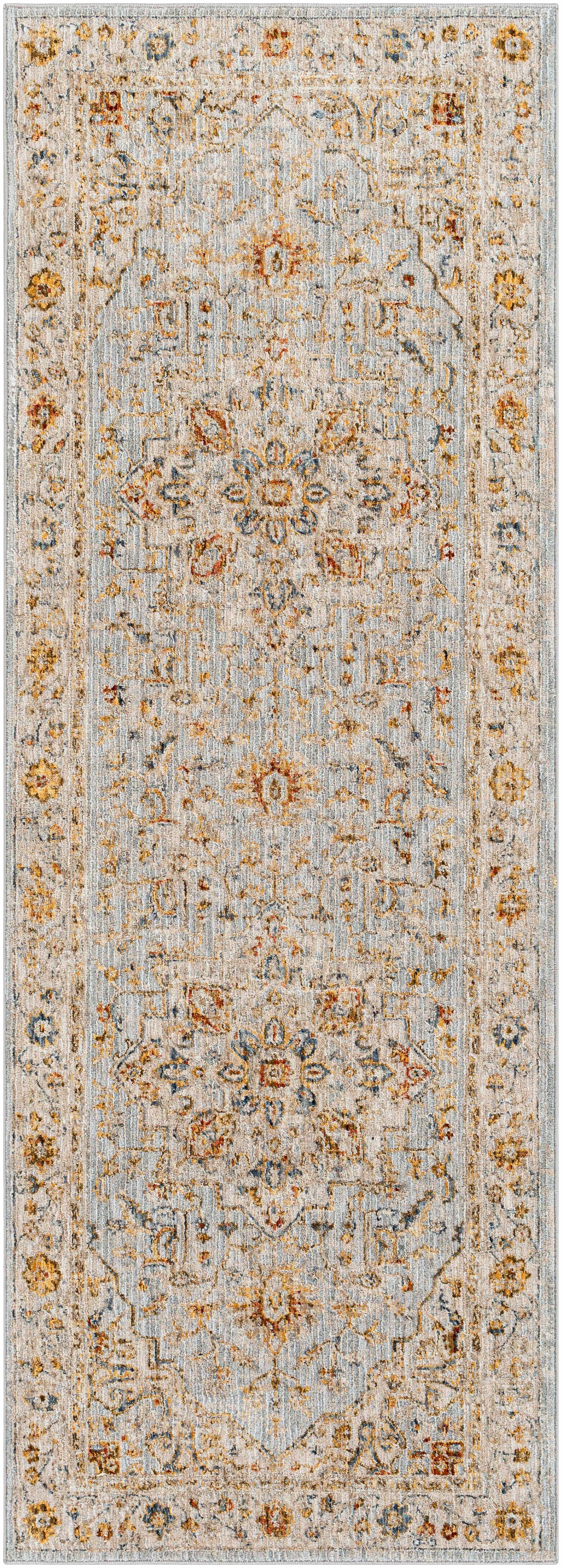 This Gray-toned machine-made rug captures the essence of traditional Heriz craftsmanship with intricate geometric motifs. Built for everyday living, it combines timeless design with practical durability and effortless care.