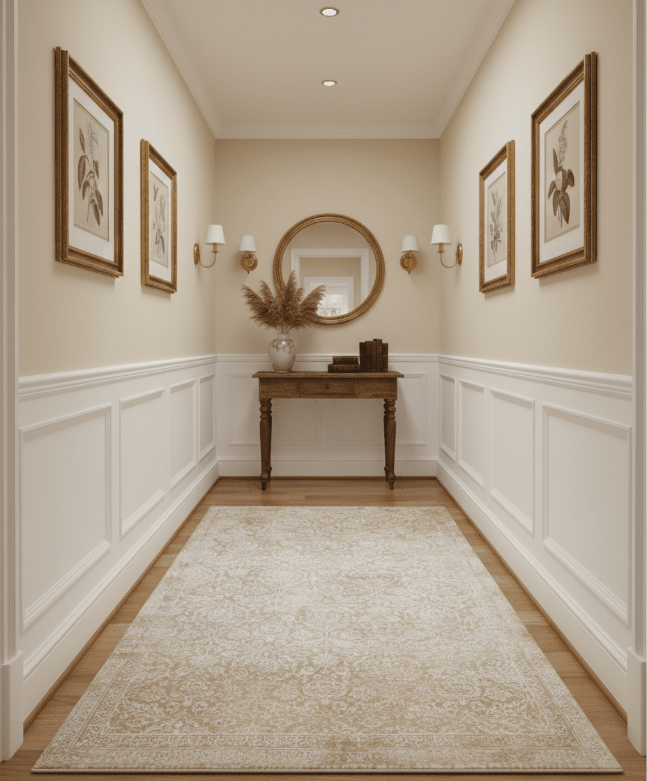 This specific rug is made in India, in the city of Bhadohi. Bhadohi is one of the biggest rug manufacturing cities. Carpet weaving in the region dates back to the 16th century during the reign of Akbar. The skilled artisans of Bhadohi have been carrying the tradition of rug-making for centuries.Â