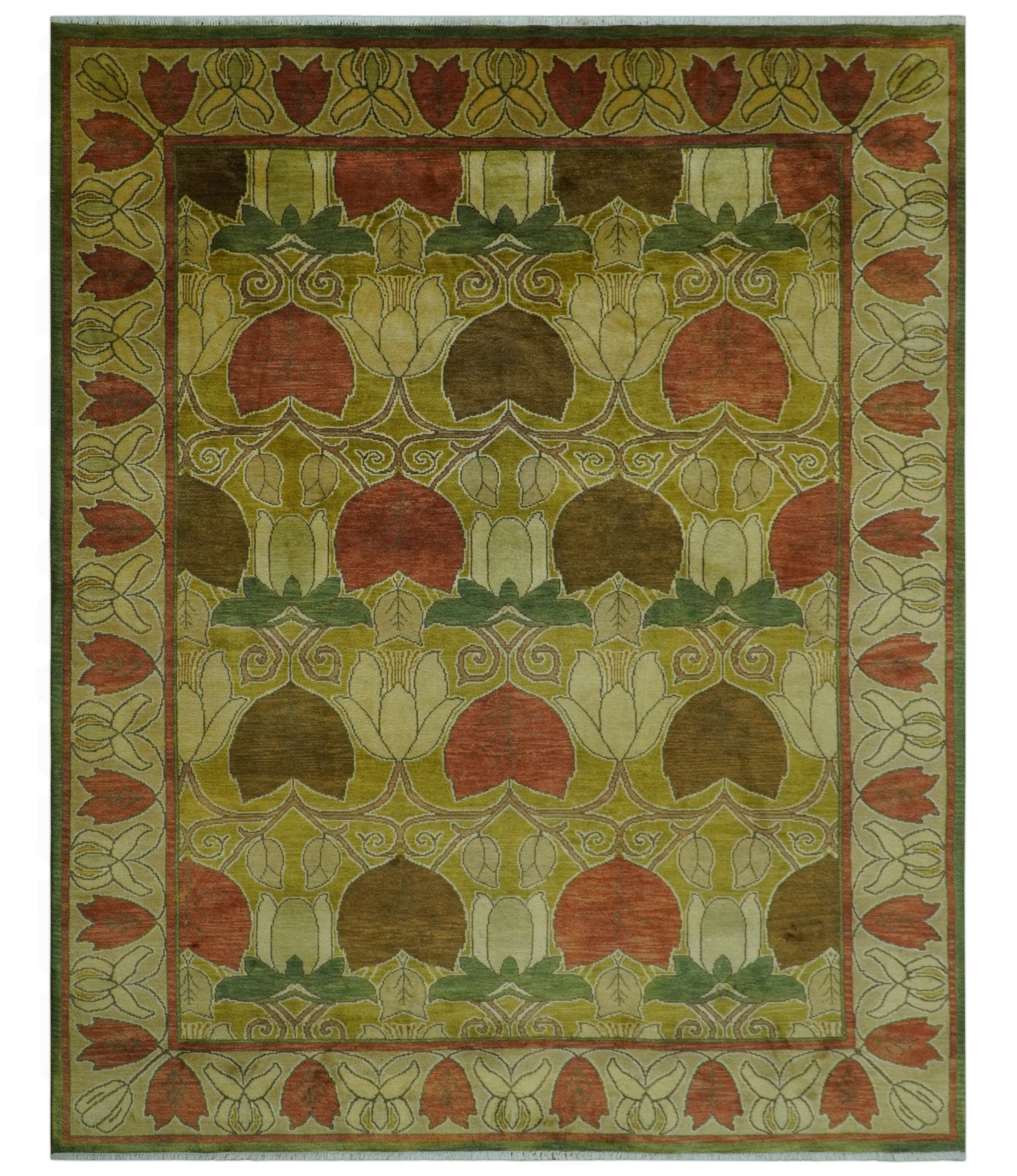 Art and Craft Design Olive Green And Brown Hand Knotted 8x10 Wool Area Rug
