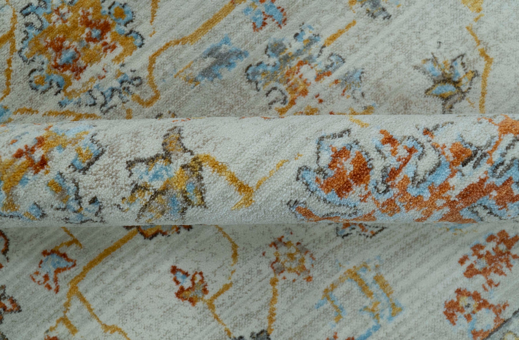 This 4'x5.7' area rug blends traditional oriental aesthetics with contemporary practicality. The silver and yellow color palette creates visual interest while machine-woven polyester construction ensures resilience against wear. Ideal for defining spaces with its classic design elements and manageable proportions.