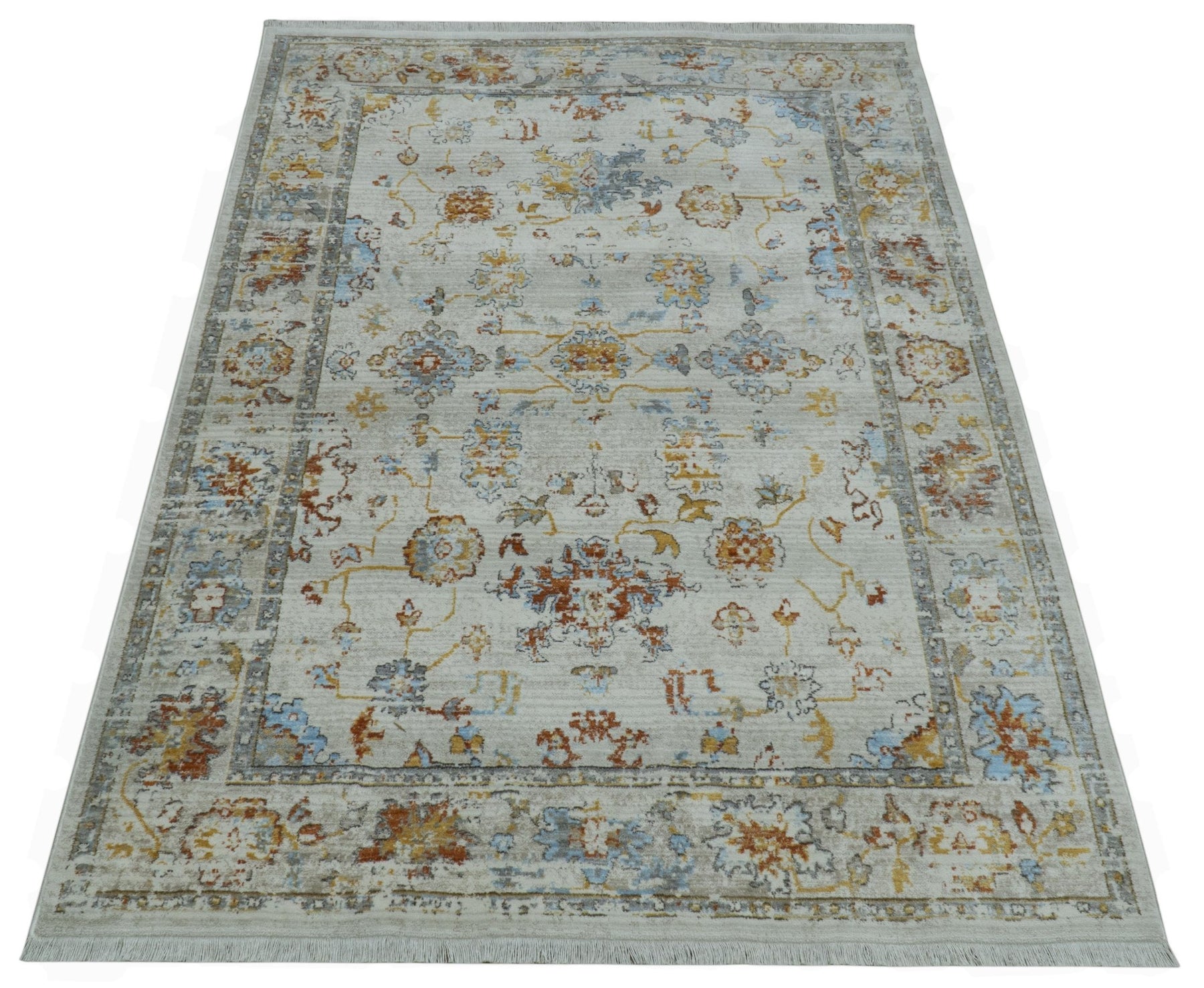 Traditional Oriental Design Silver And Rust Machine Woven 4x5.7 Polyester Area Rug