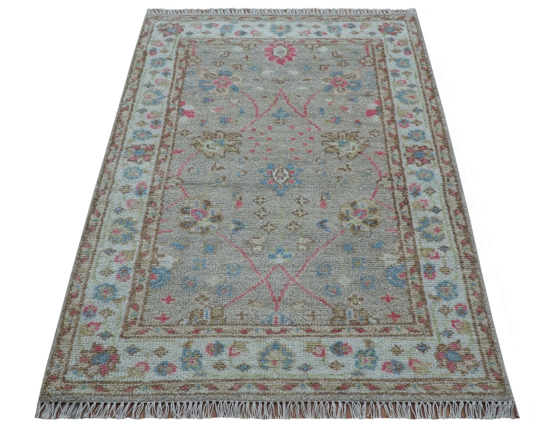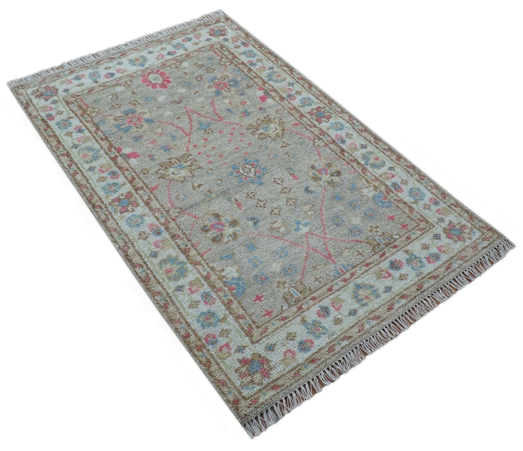 Traditional Oushak Design Beige And Blue 4x6 Hand knotted Wool Area Rug