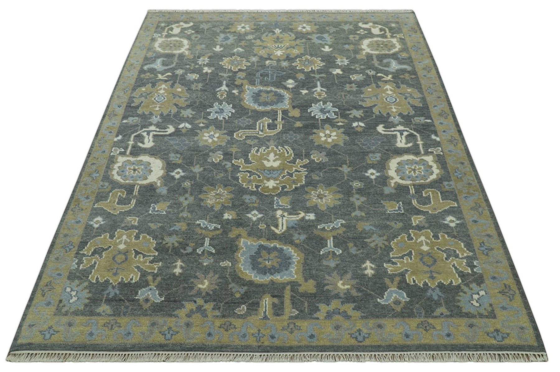 Traditional Oushak Design Charcoal And Camel Hand Knotted Custom Made Wool rug